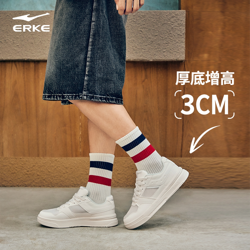 玩酷3鸿星尔克板鞋男鞋夏季小白鞋网面透气运动鞋厚底鞋子休闲鞋