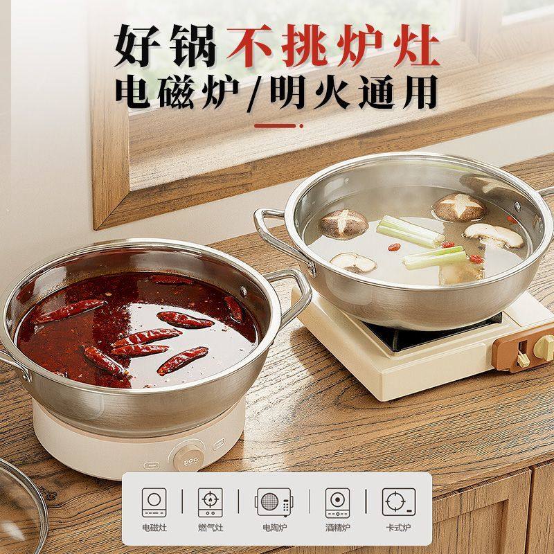不锈钢鸳鸯锅火锅汤锅炉子专用加厚锅具家用单人小火锅商用火锅盆