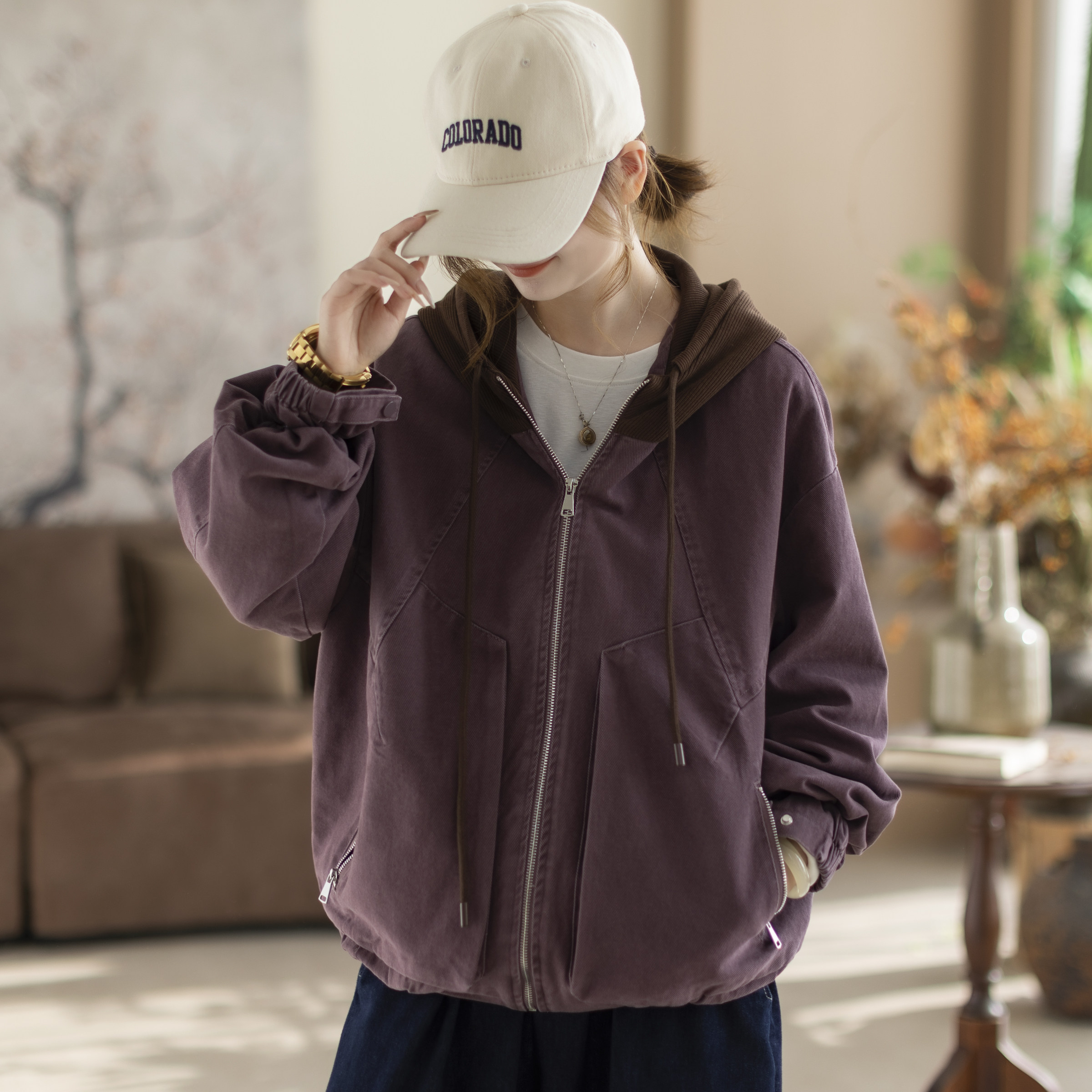 骆驼山海夹克女装2025秋冬紫色加绒外套女户外工装百搭保暖登山服