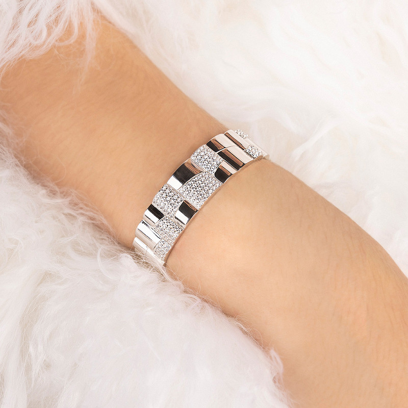 APM Monaco银白色密镶手镯手饰前卫现代摩登几何设计感生日礼物