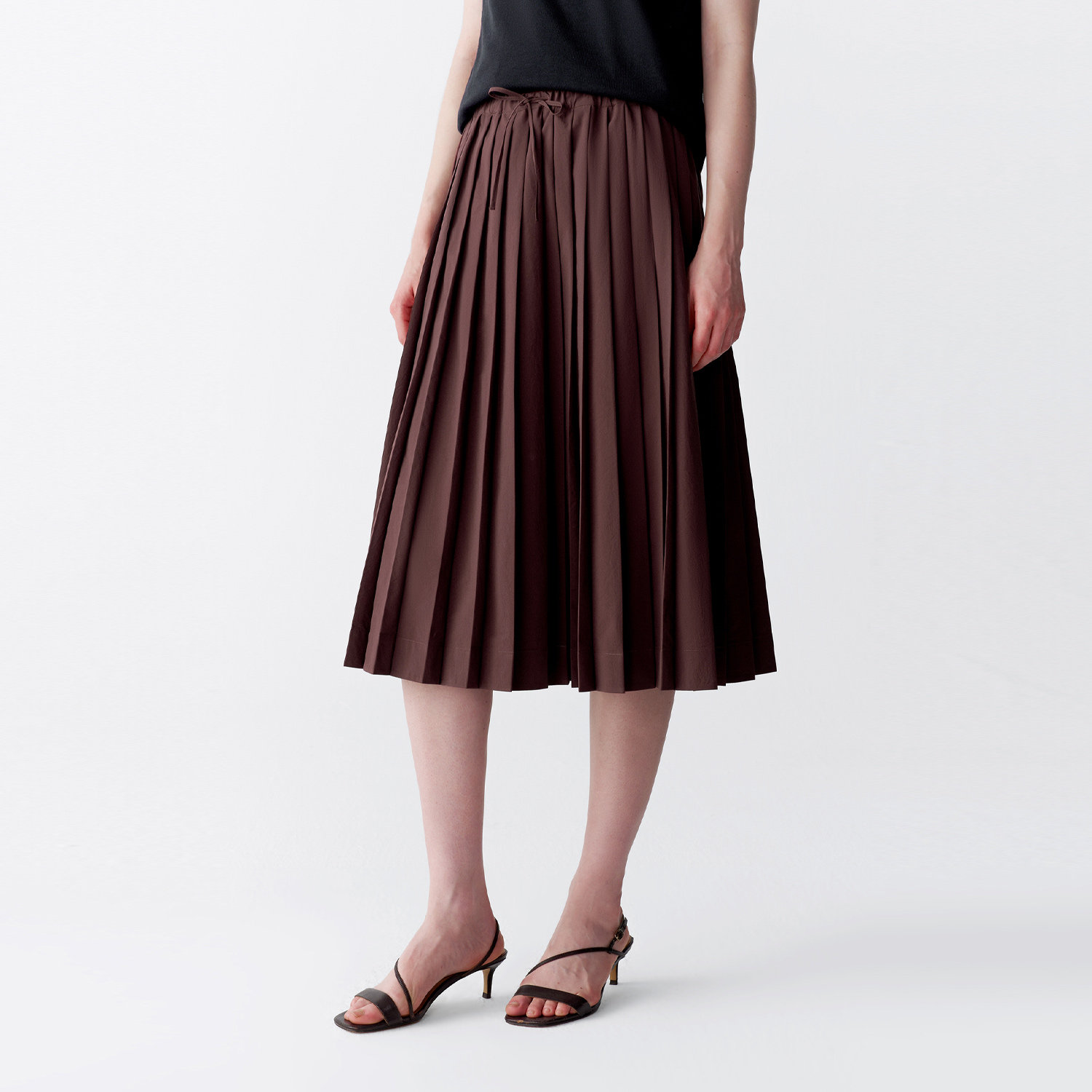 她池松紧腰百褶裙2025秋装新款女装时尚简约中长款A字高腰半身裙