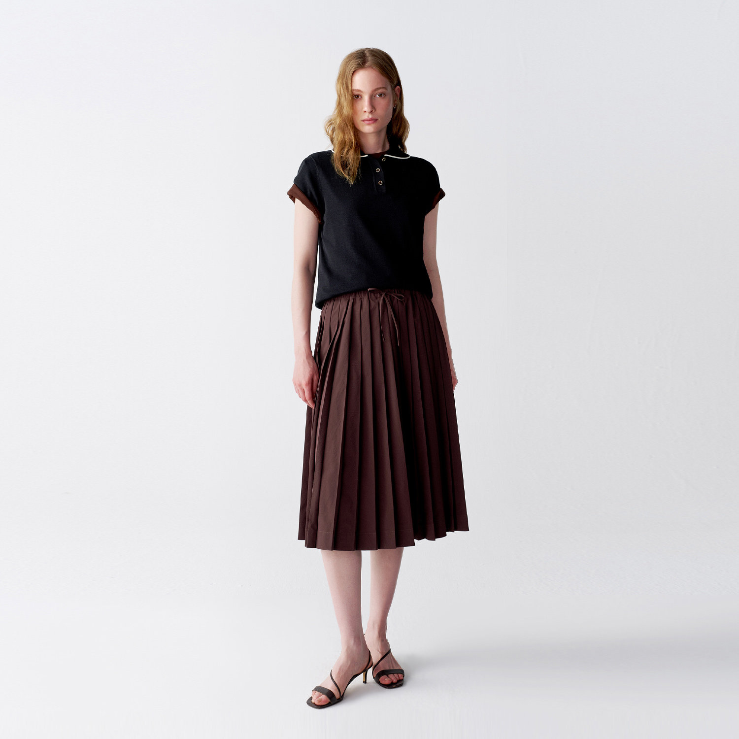 OVV2026春夏新款女装松紧腰抽绳经典休闲A字百褶半身裙