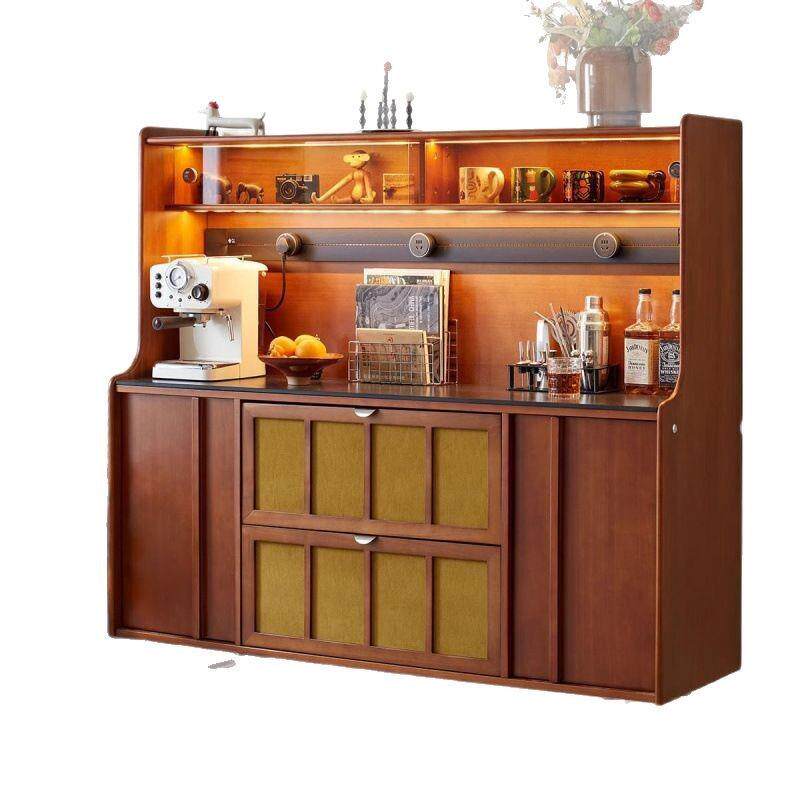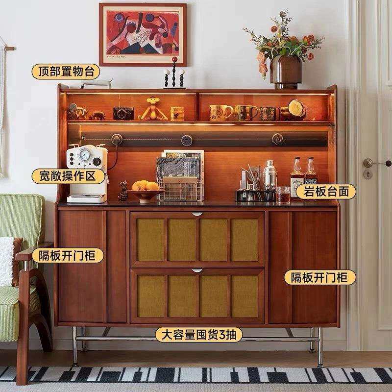 黄杨木复古法式餐边柜靠墙一体储物柜双层客厅酒柜小型橱柜茶水柜
