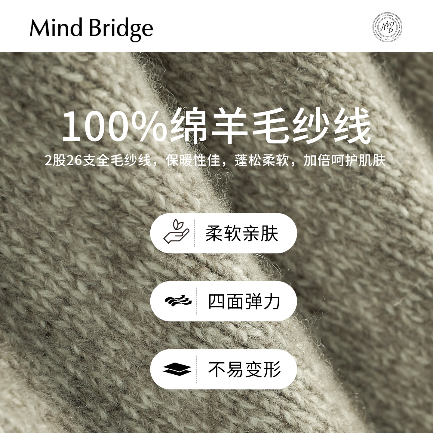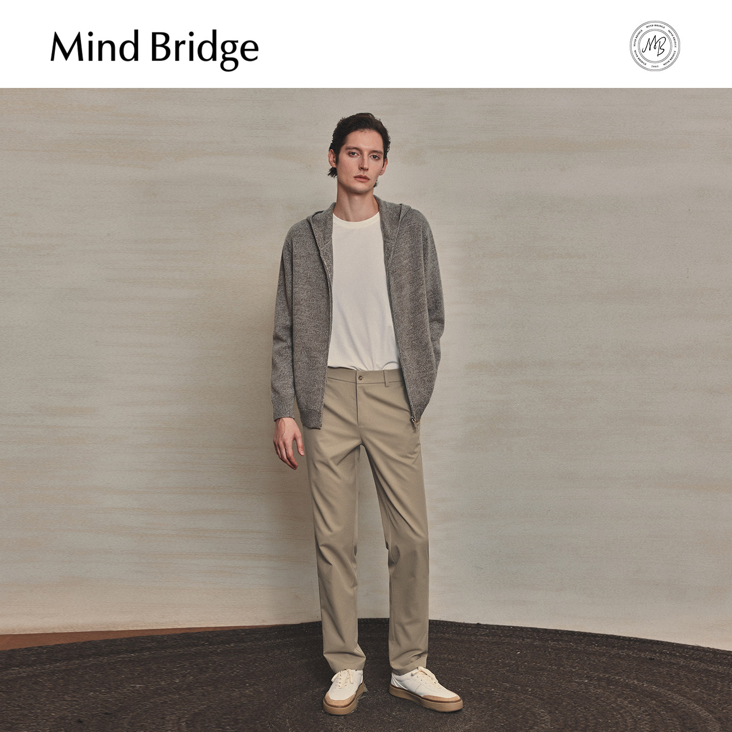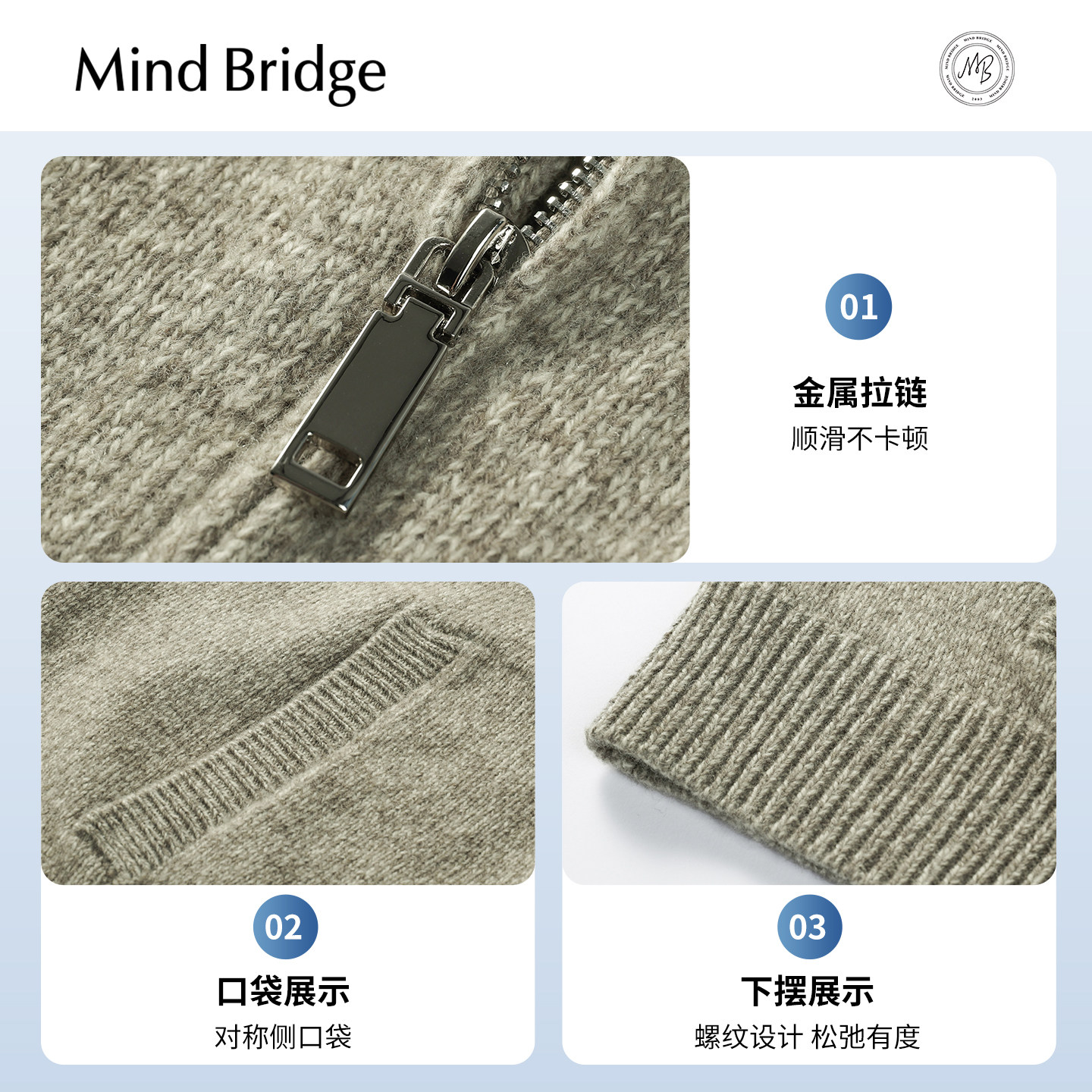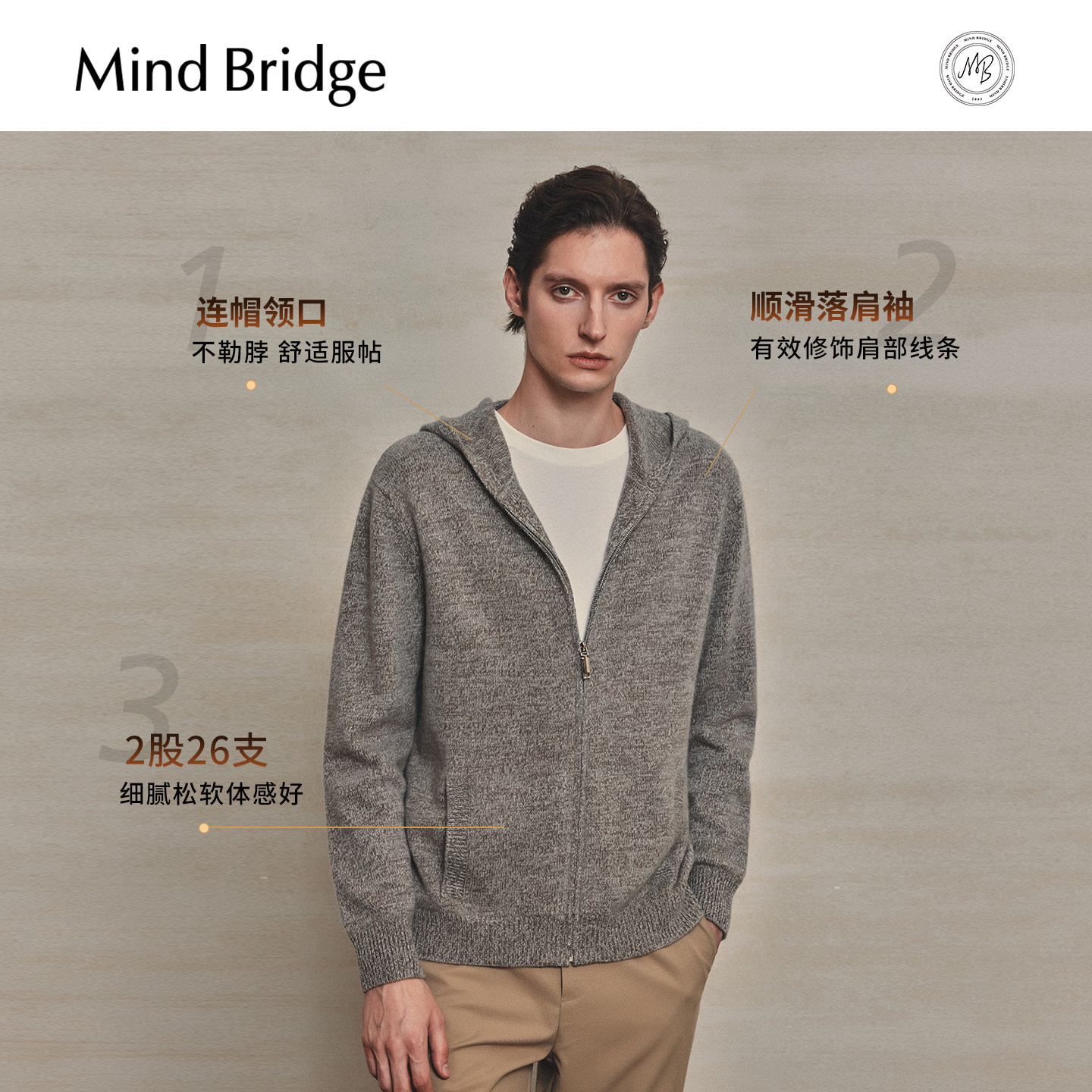 MindBridge【绵羊毛】男士连帽毛衣开衫2026年春纯色厚款针织外套