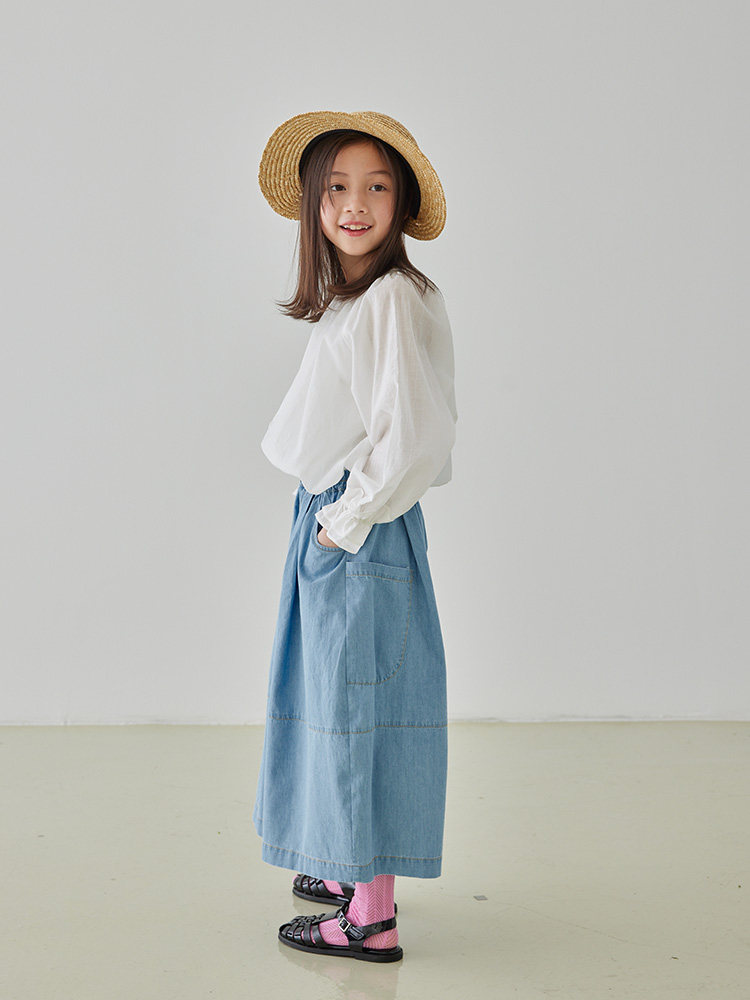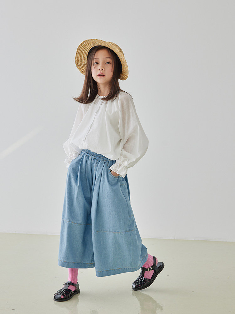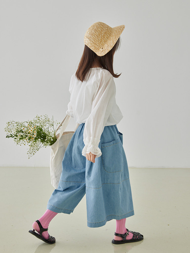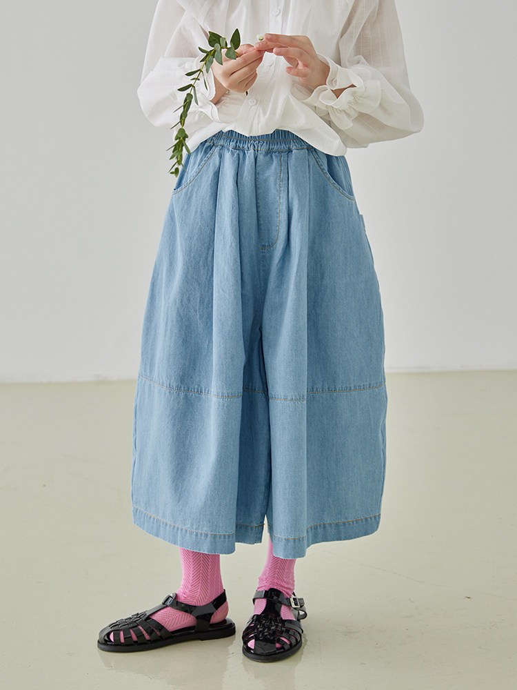棵初24夏季儿童牛仔裙裤女童纯棉薄款阔腿裤浅蓝休闲宽松九分裤
