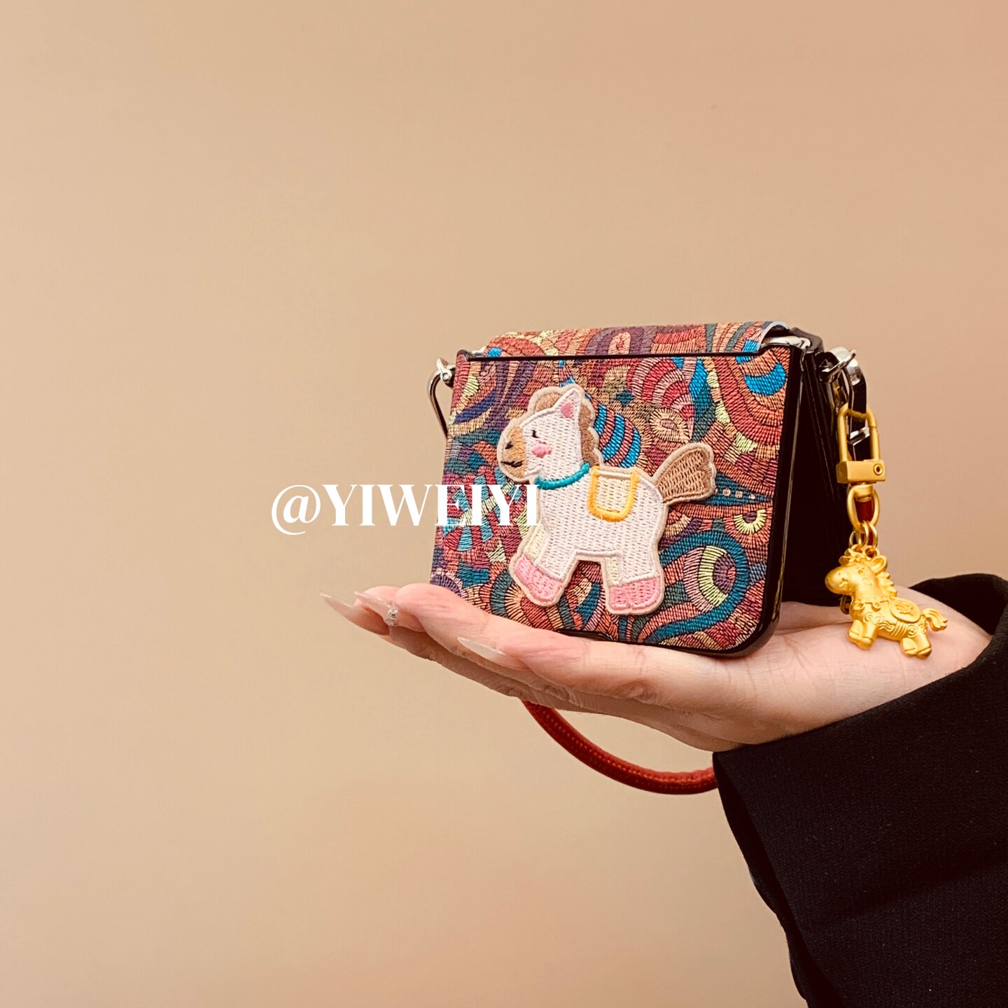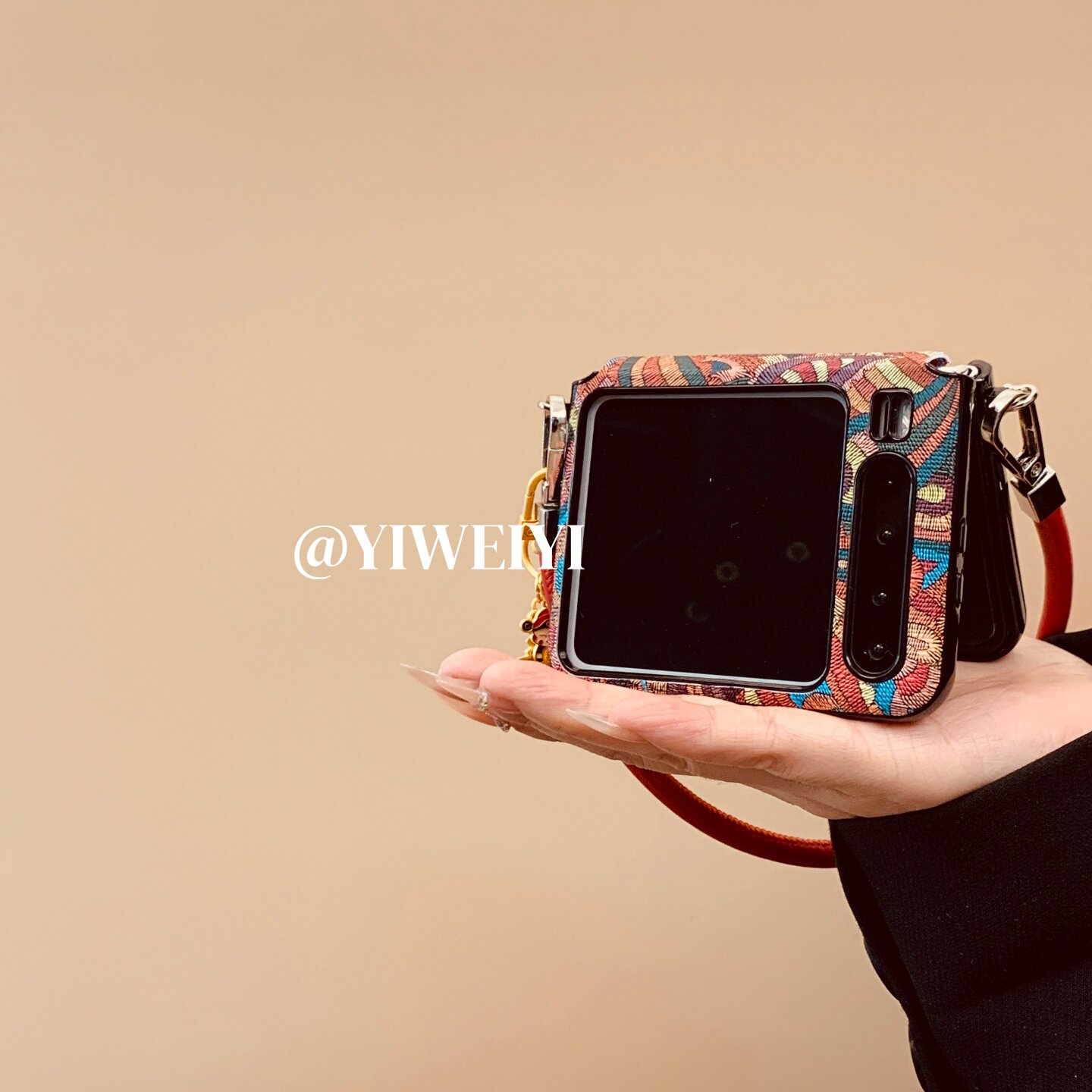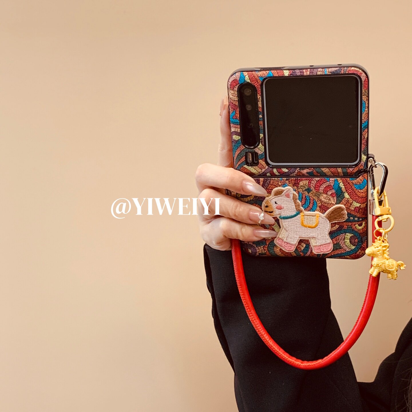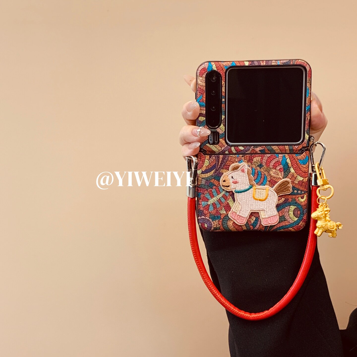 折叠屏手机壳彩色腰果花刺绣小马手提挂件