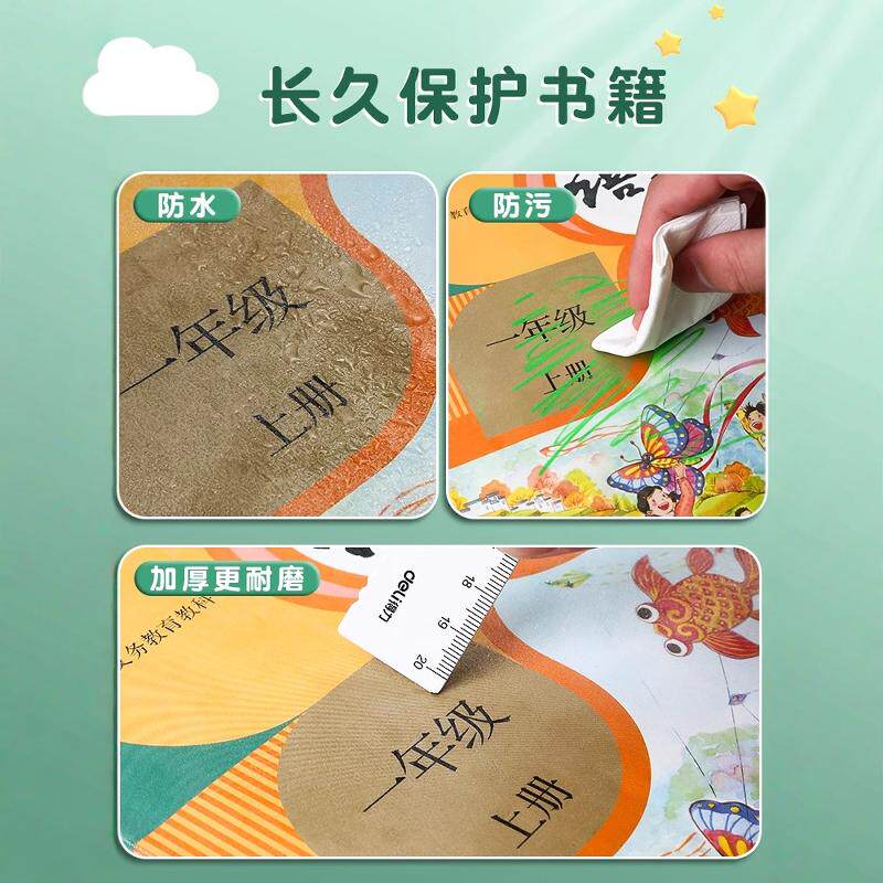 得力书皮贴纸自粘透明磨砂包书膜一年级下册包书皮书套小学生二三四年级课本A4书壳保护套16K包书纸2025新款