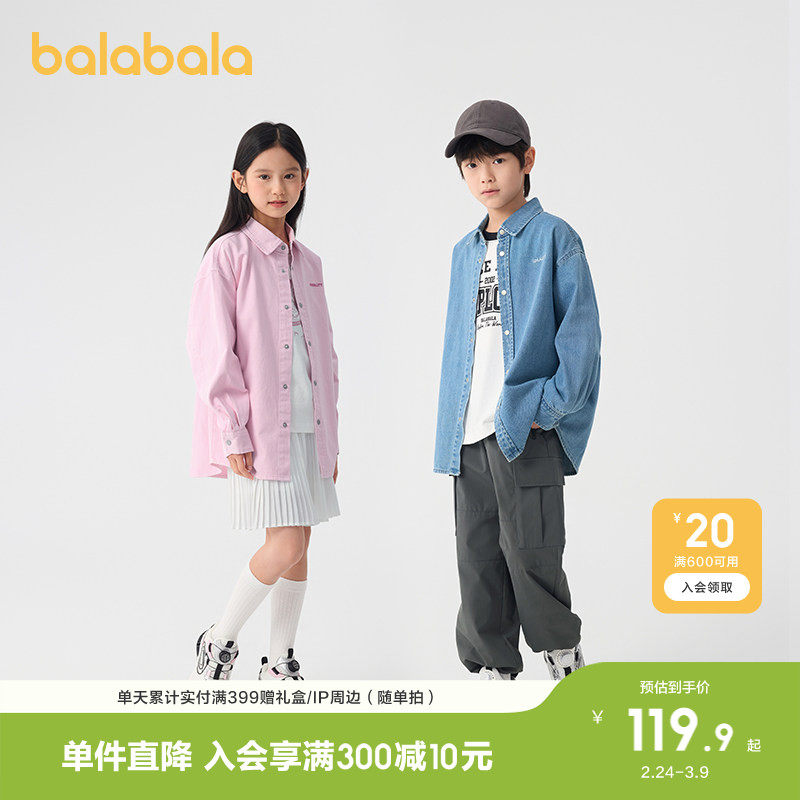 巴拉巴拉童装儿童衬衫2025新款女童男童上衣长袖衬衫春秋简约百搭