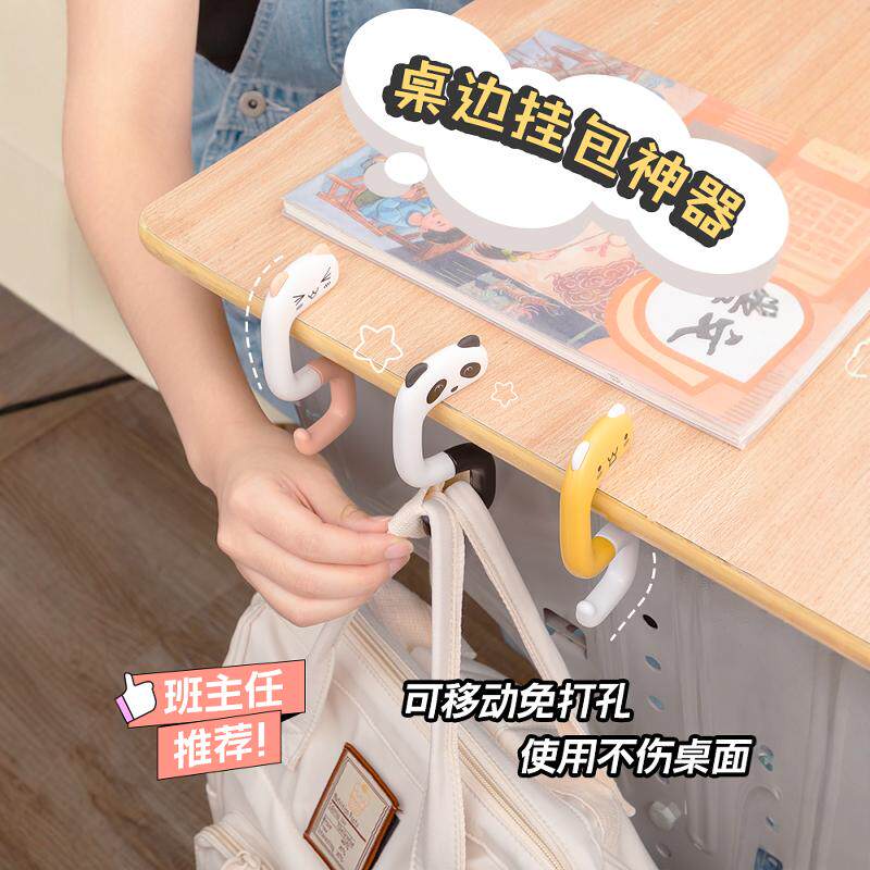 【免打孔】小象随身挂包钩桌边挂包神器书架桌面收纳书袋学生课桌侧边书本挂袋小学生初中生教室用多功能书挂