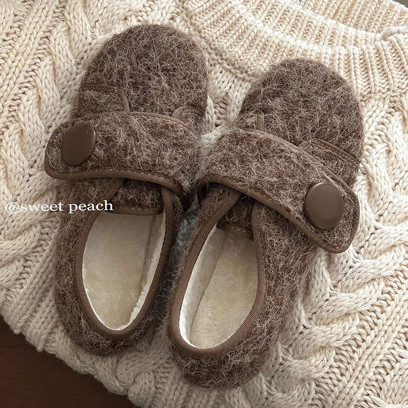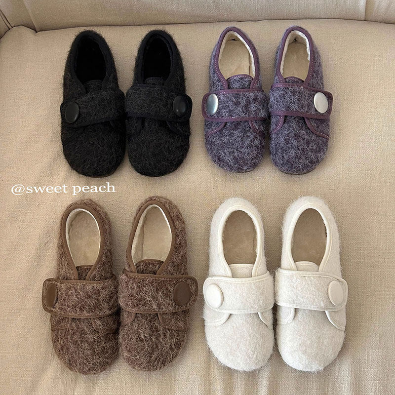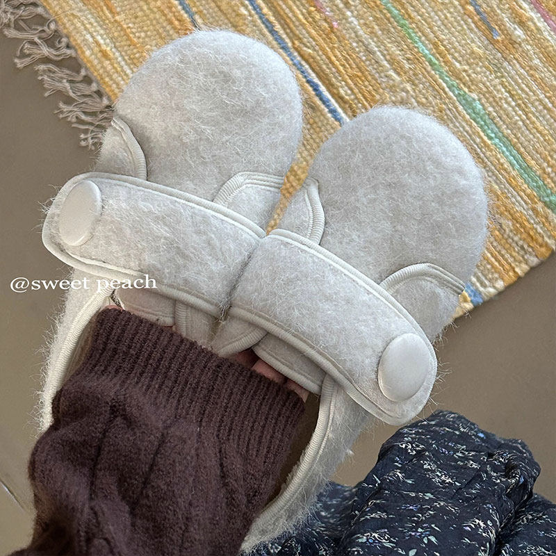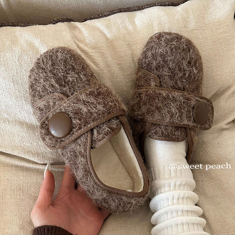 平底小众魔术贴加绒毛毛鞋女2025新款秋冬懒人外穿豆豆二棉鞋单鞋