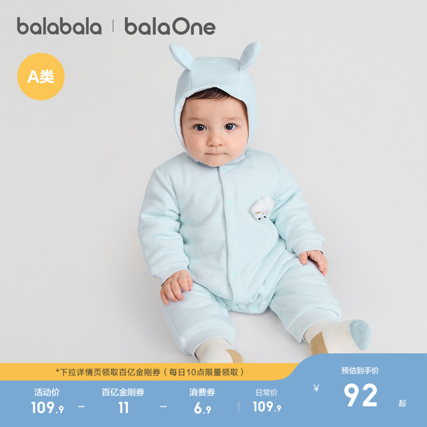 巴拉巴拉新生婴儿连体衣夹棉冬装2025款秋冬宝宝衣服爬服哈衣可爱