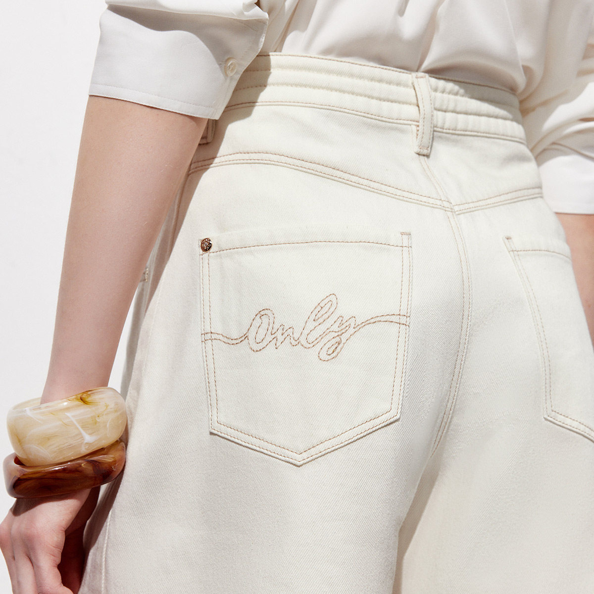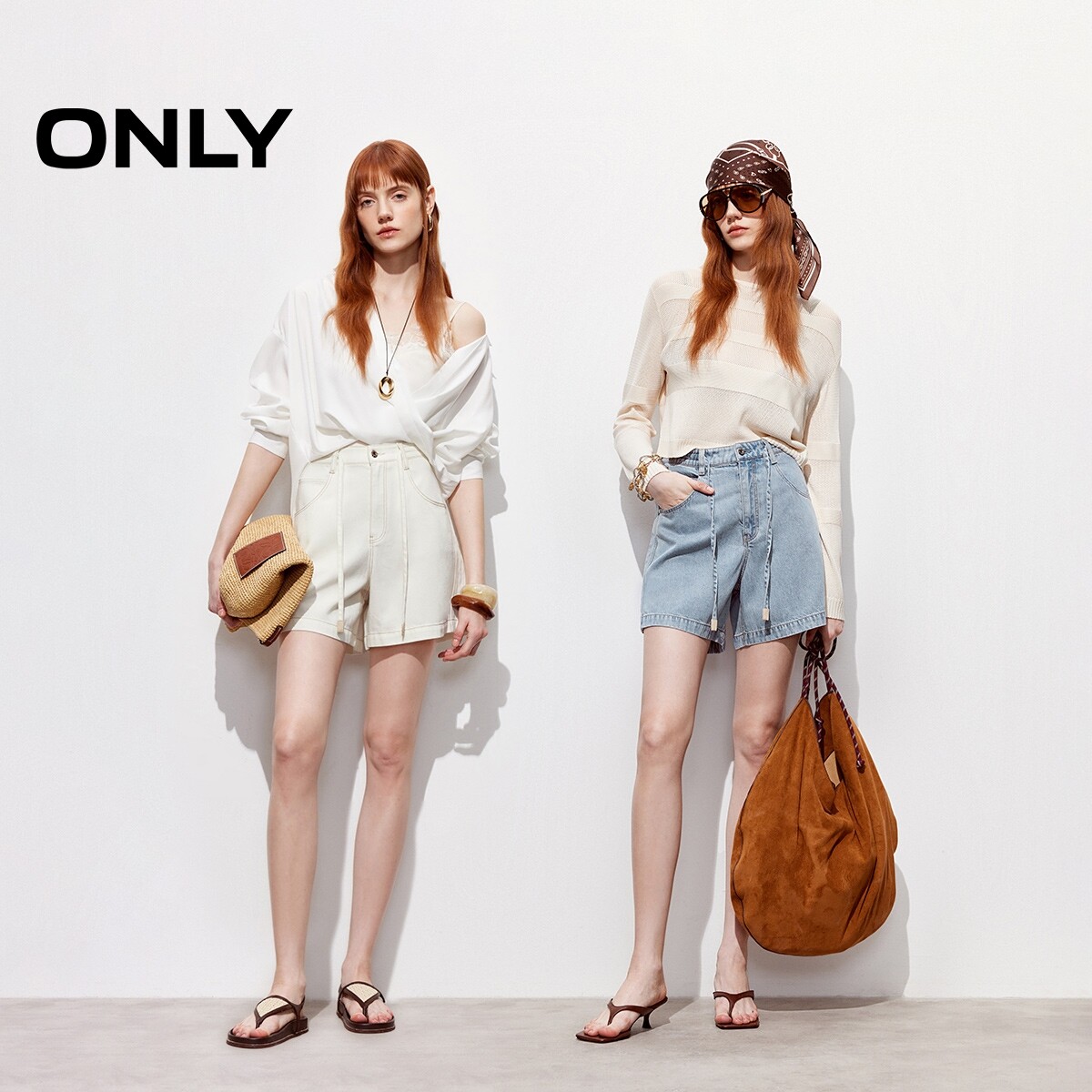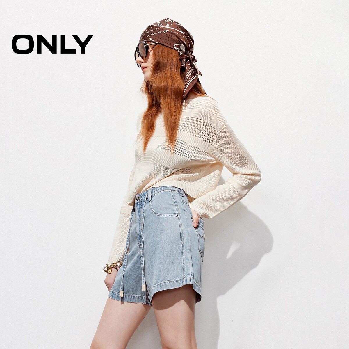 ONLY2026春季新款清新盐系水洗字母刺绣高腰抽绳A字短裤牛仔裤女