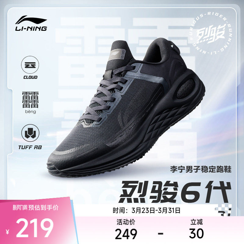 李宁烈骏6代 Essential丨 跑步鞋男款低帮轻弹耐磨舒适黑色运动鞋