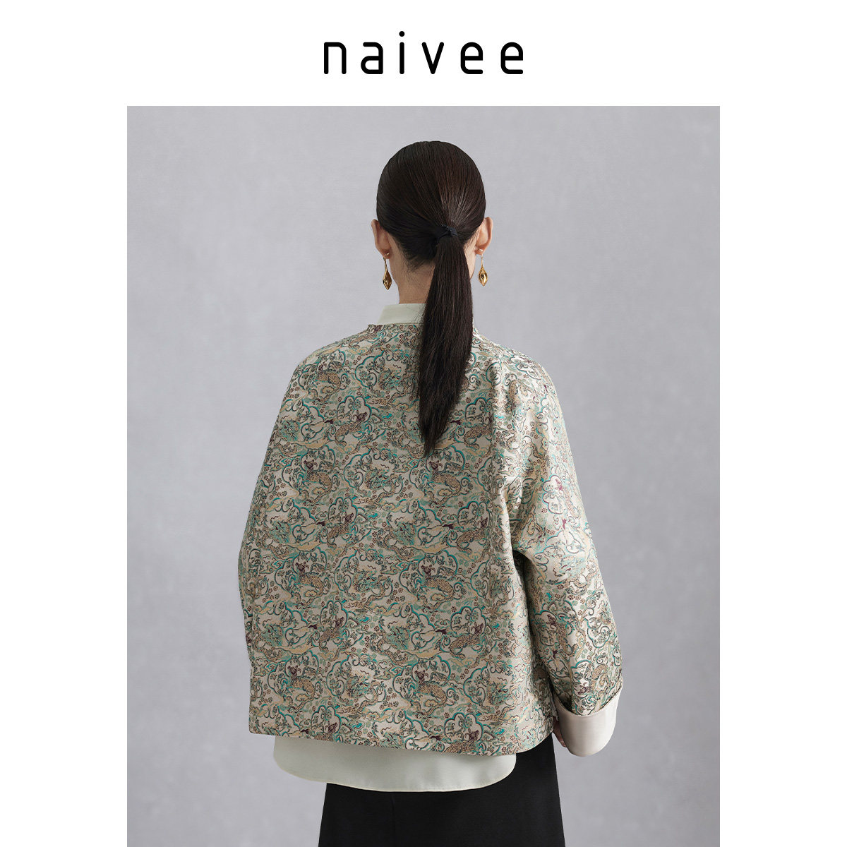 商场同款naivee纳薇秋冬季新中式穿搭高智宽松光泽时尚上衣外套女