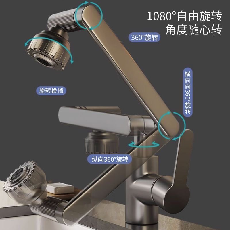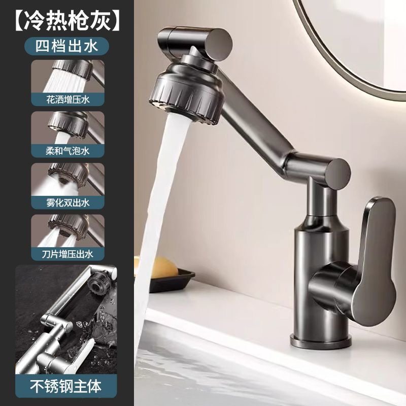 不锈钢万向旋转水龙头精铜招财猫厨房卫生间冷热水洗脸洗手面盆池