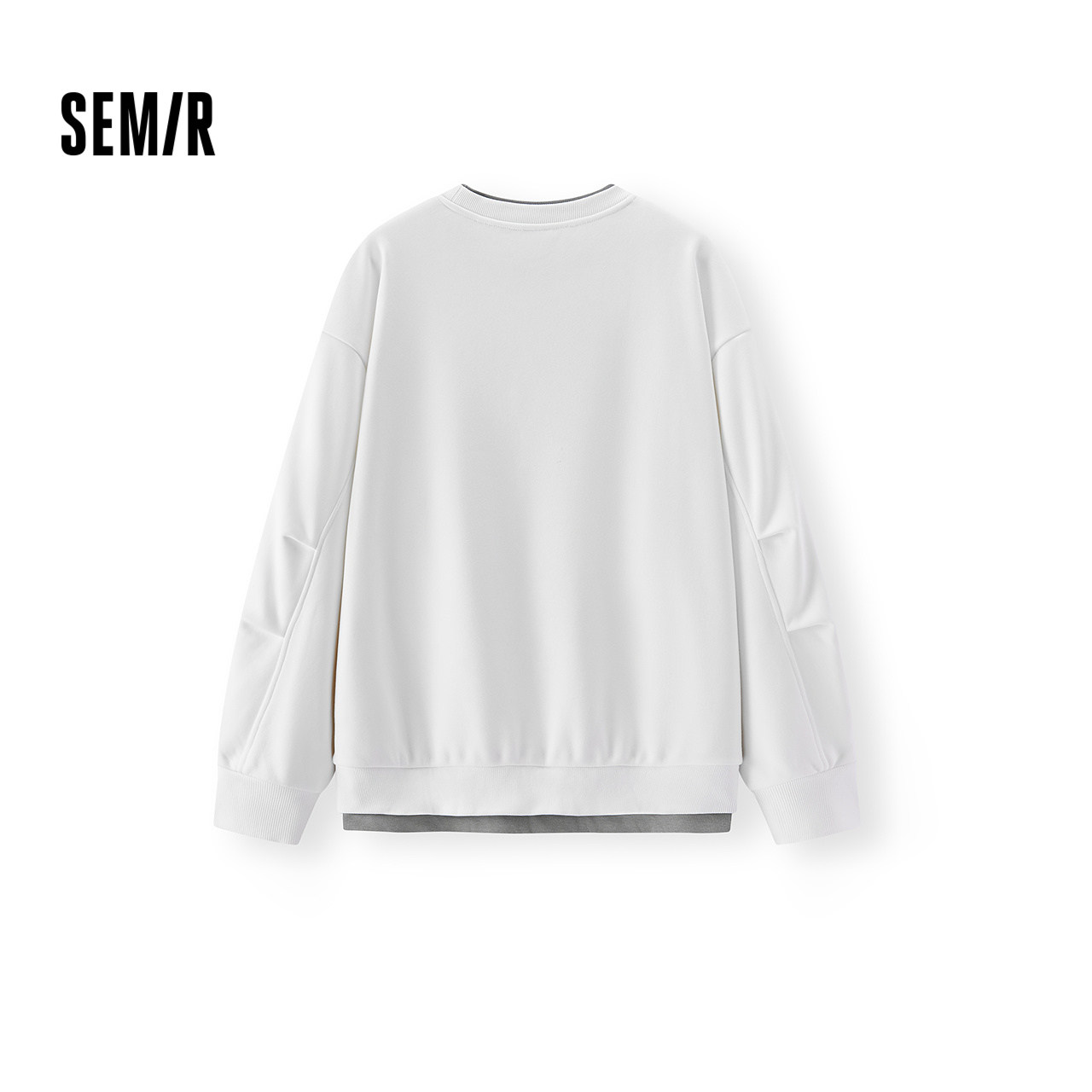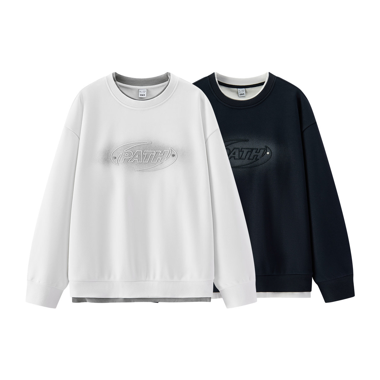 商场同款|森马卫衣男冬加绒拼色假两件2025新款字母绣花上衣时尚