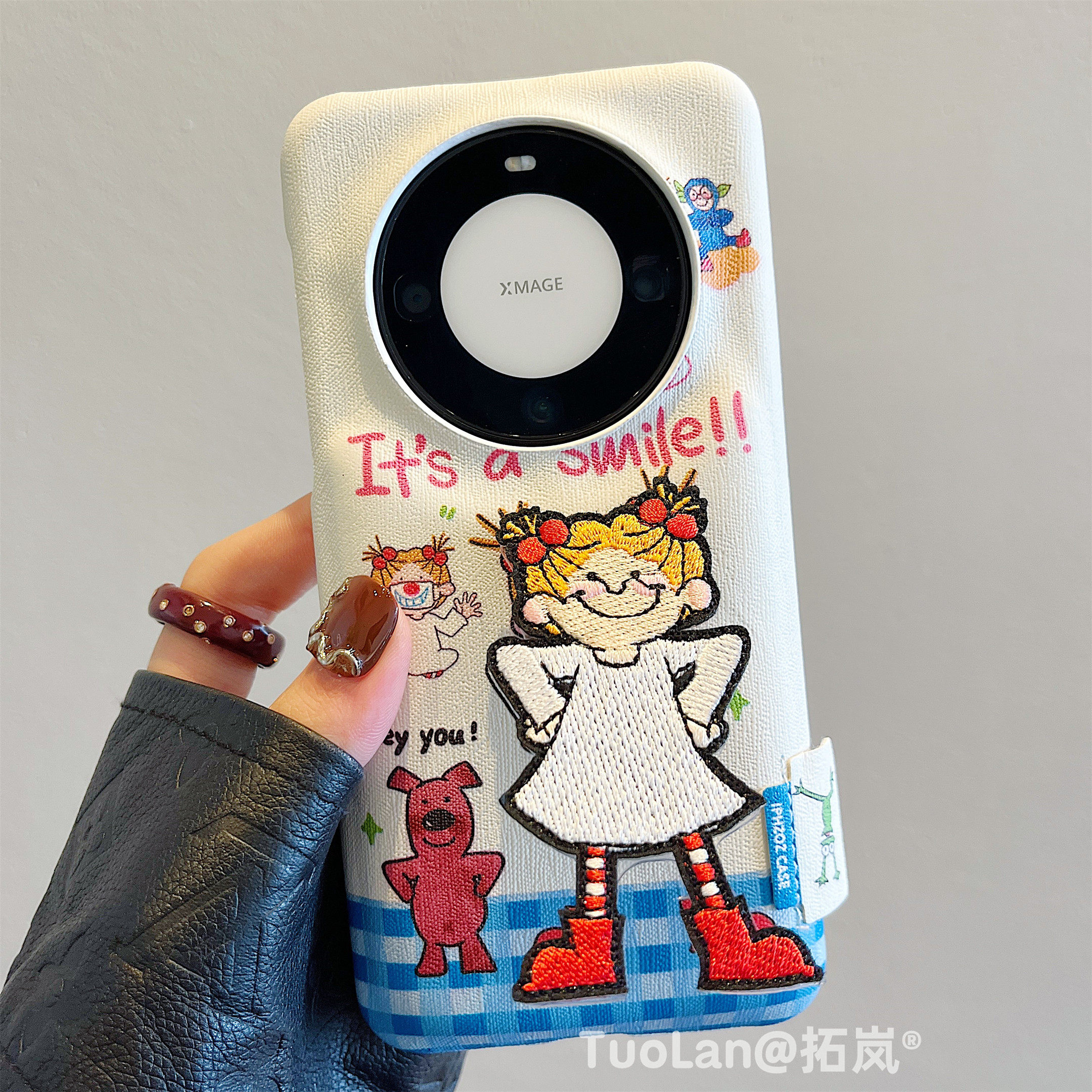 拓岚 适用华为mate70pro+手机壳mate60少女卡通可爱coco酱女孩刺绣折叠支架新款pura70pro+皮质鼓包防摔保护