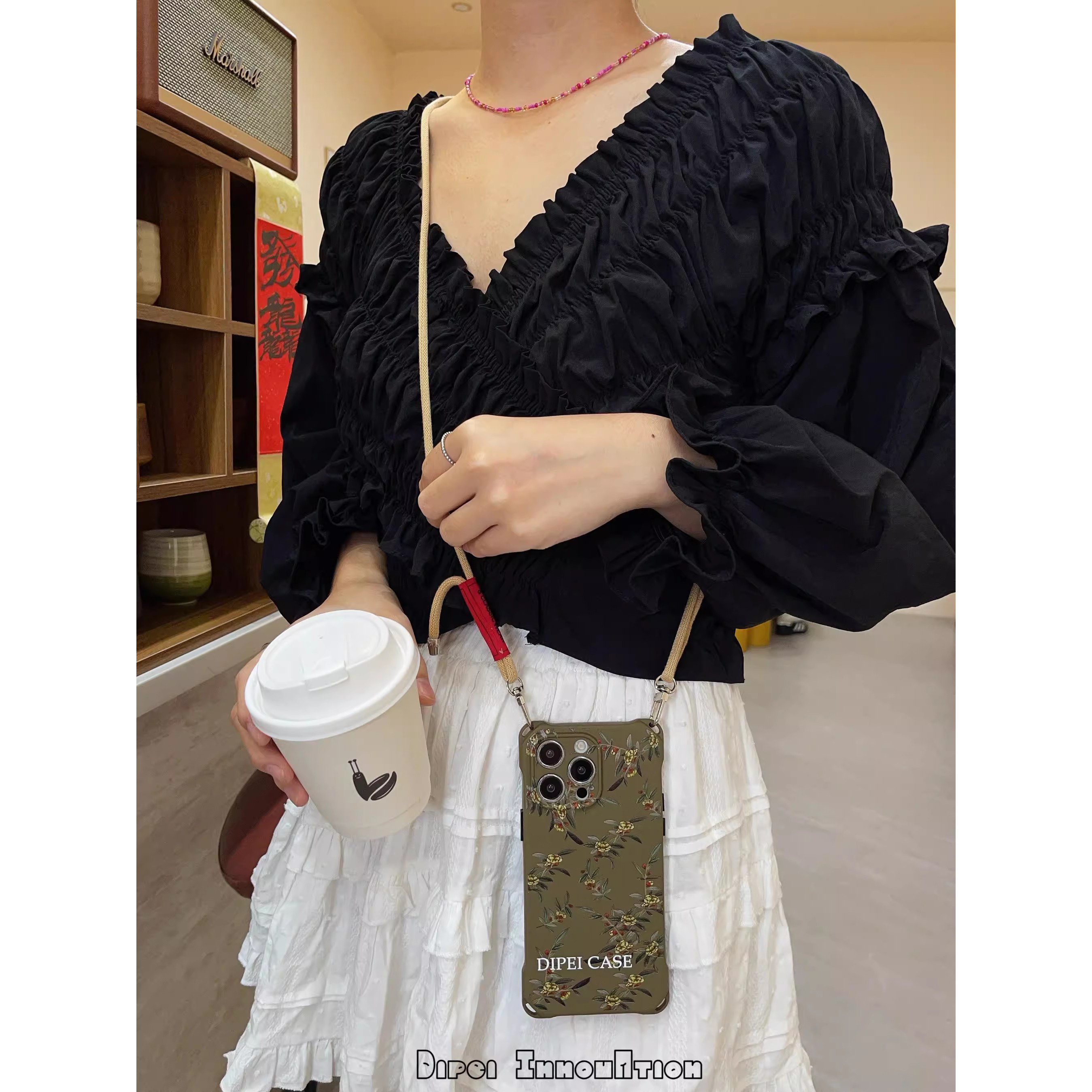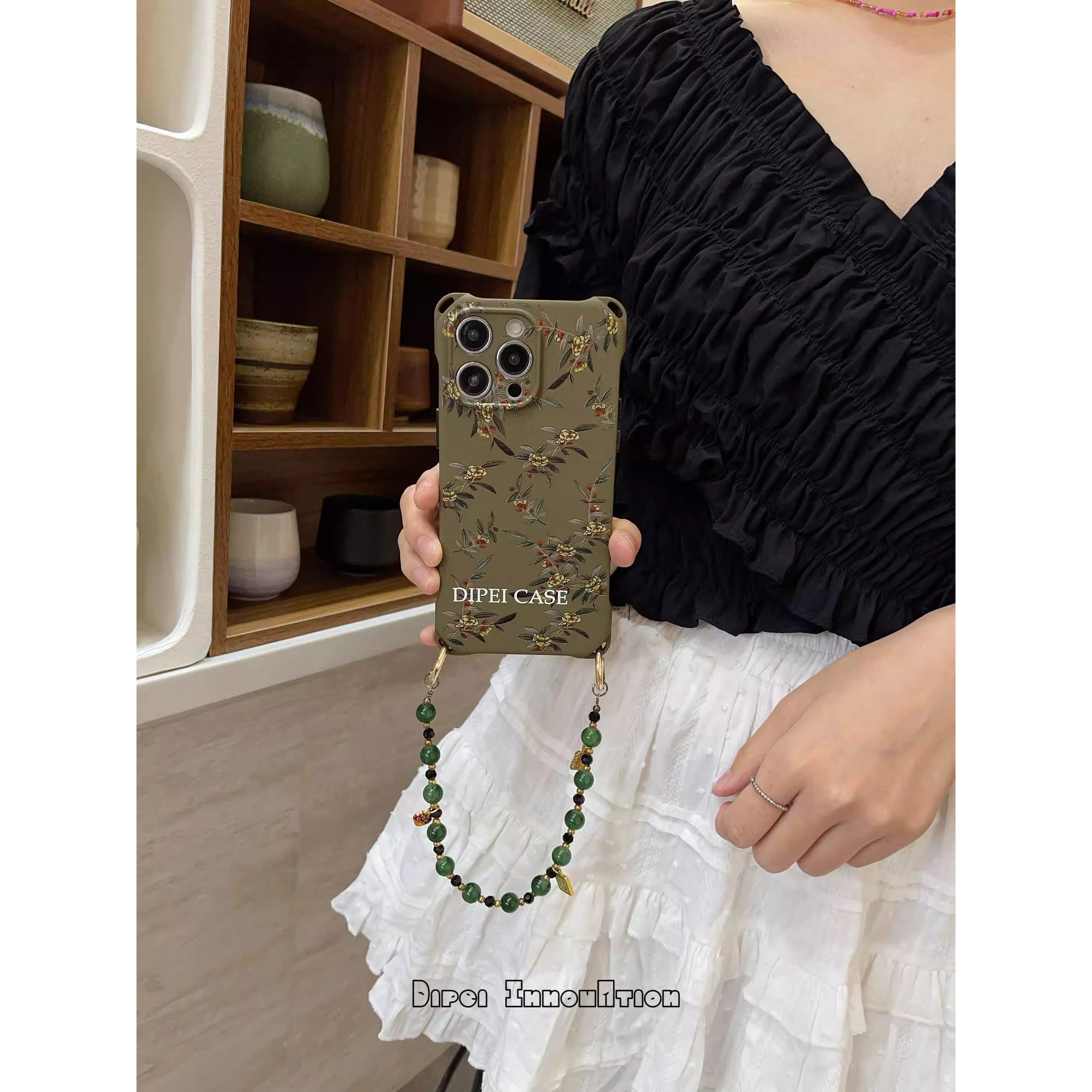 复古风树花带时尚链条手机壳17Promax手腕适用华为苹果iPhone15斜挎挂绳mate60pro可调节防摔nova12女magic6