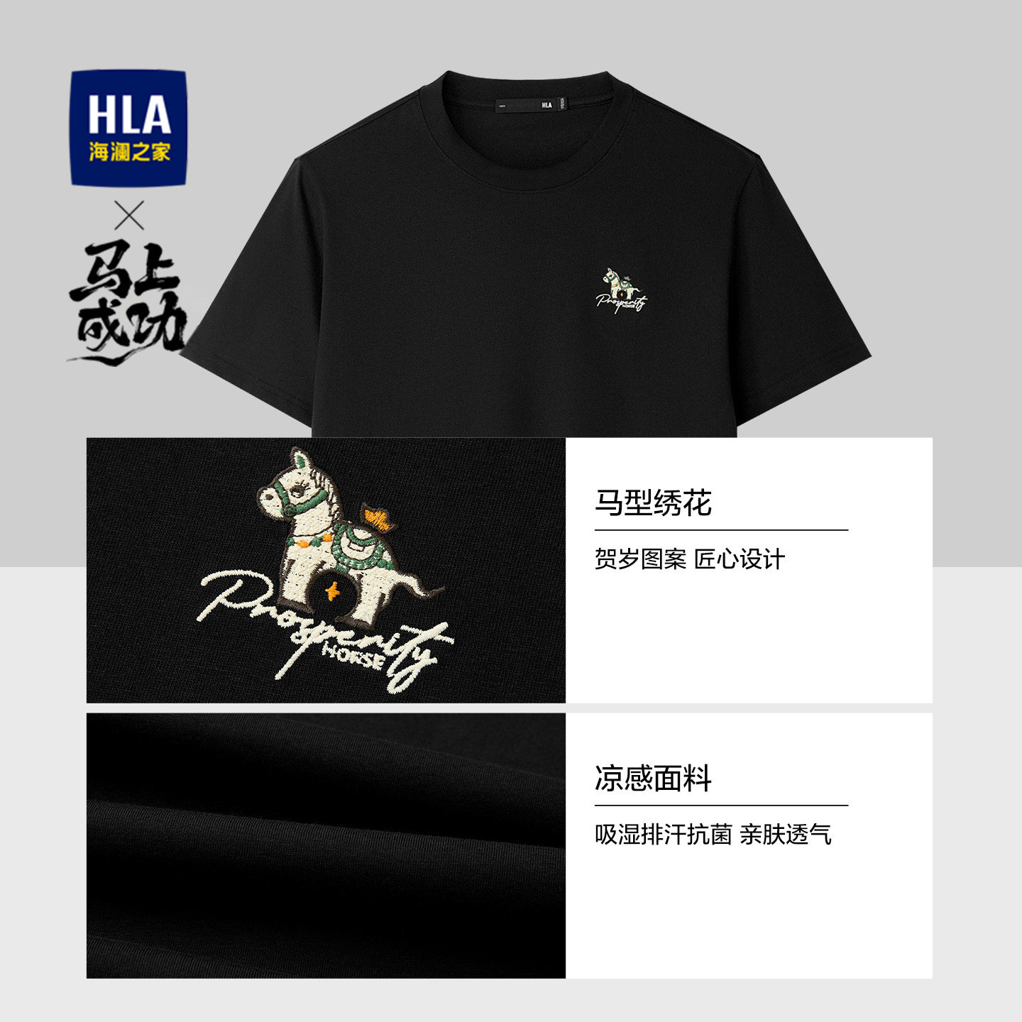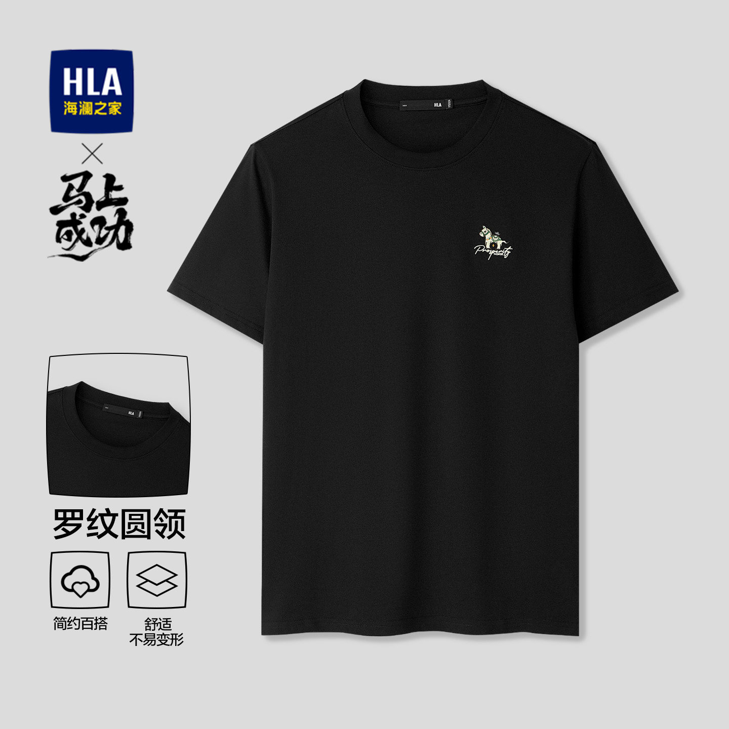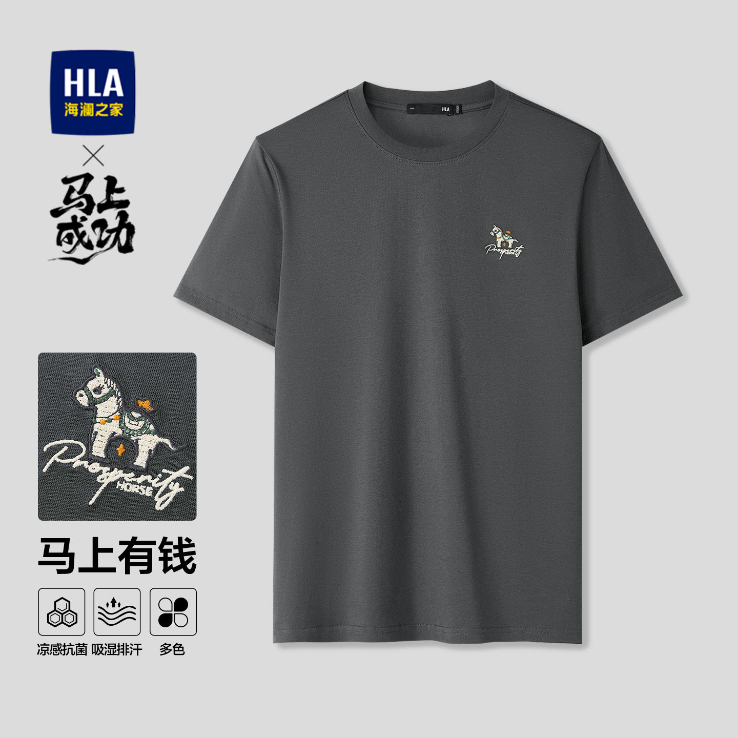 【凉感】HLA海澜之家马年贺岁系列26夏新发财大码短袖T恤上衣男装