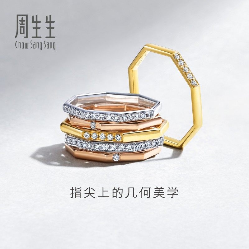 周生生18K玫瑰金Daily Luxe系列八角形钻石戒指92697R