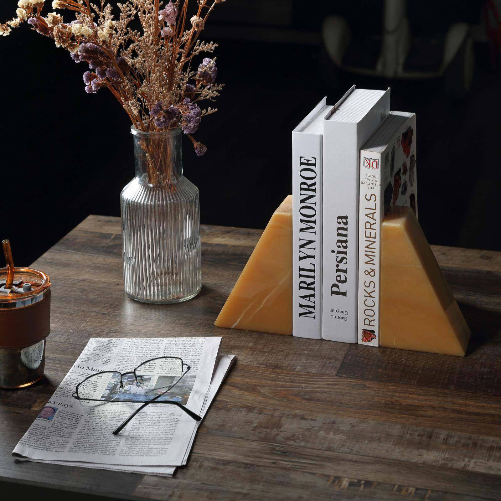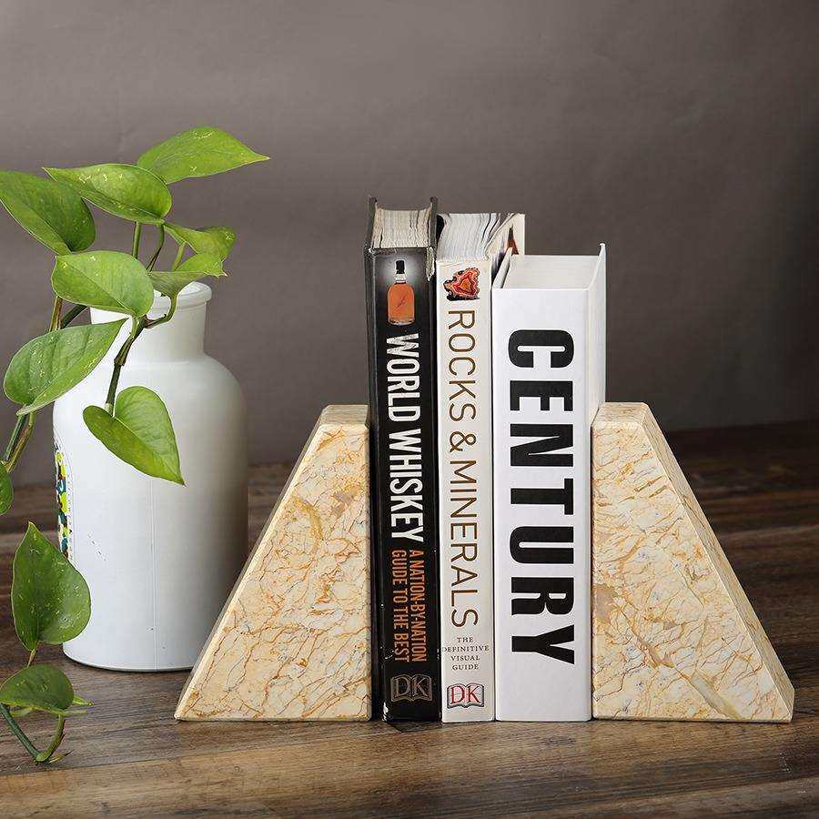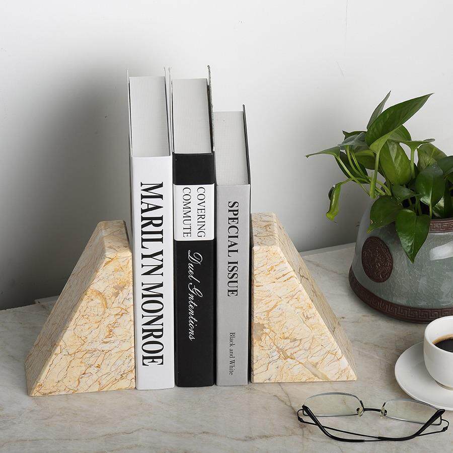 简约大理石书靠天然矿石书档书房桌面客厅装饰几何体软装现代摆件