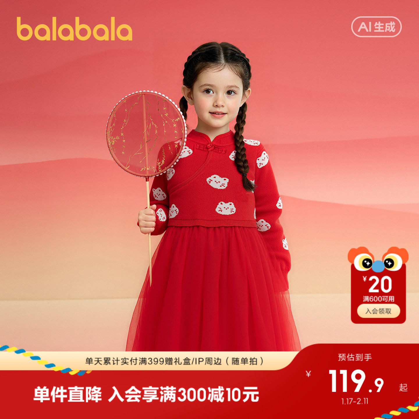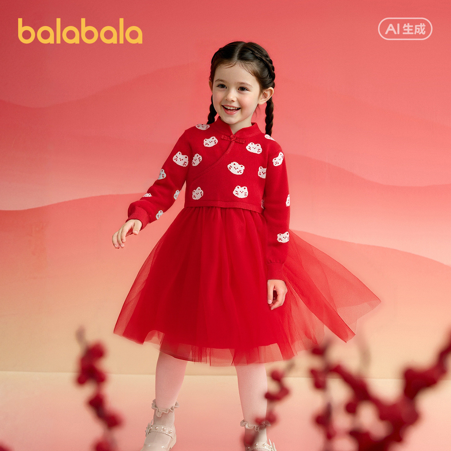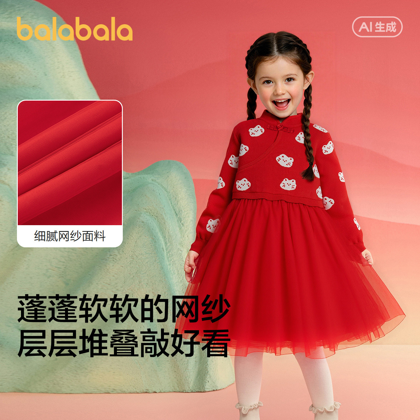 巴拉巴拉balaOne童装女公主裙2025秋冬新款儿童连衣裙针织网纱裙