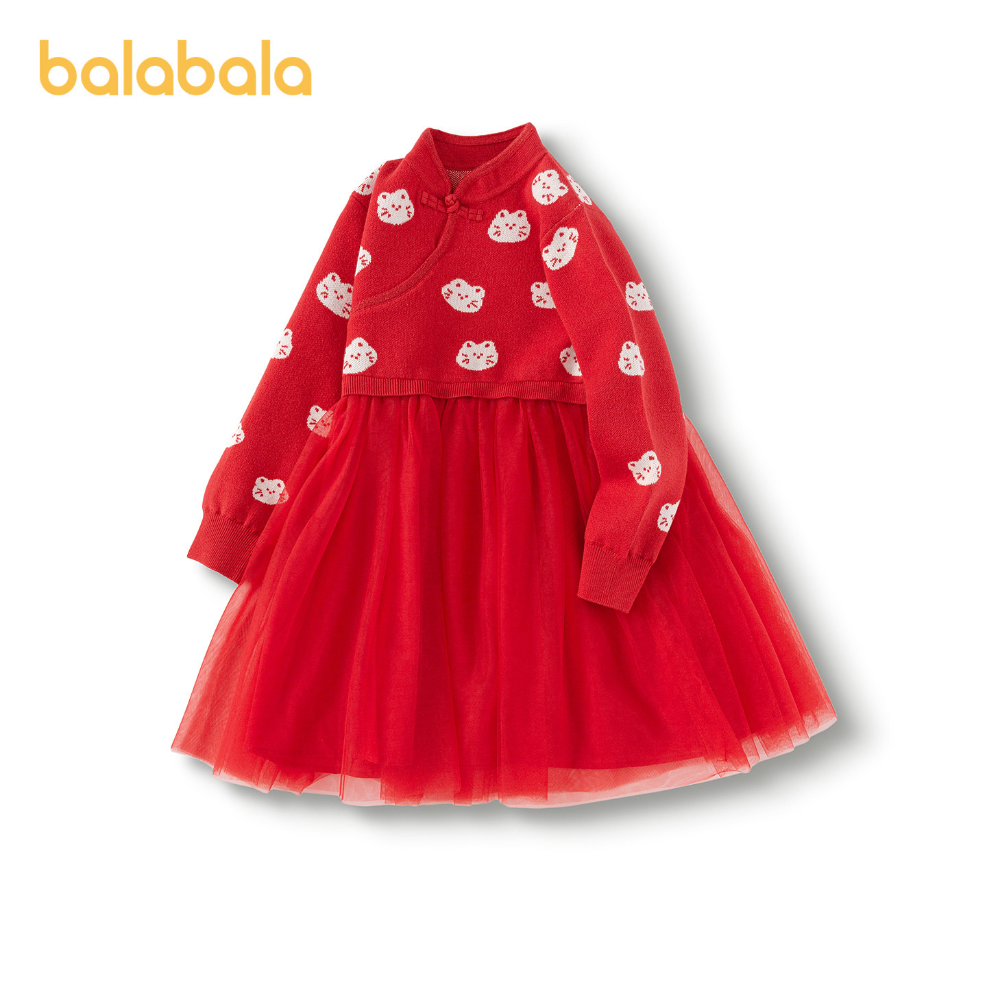巴拉巴拉女童连衣裙宝宝拜年裙子冬装新款童装儿童红色洋气公主裙