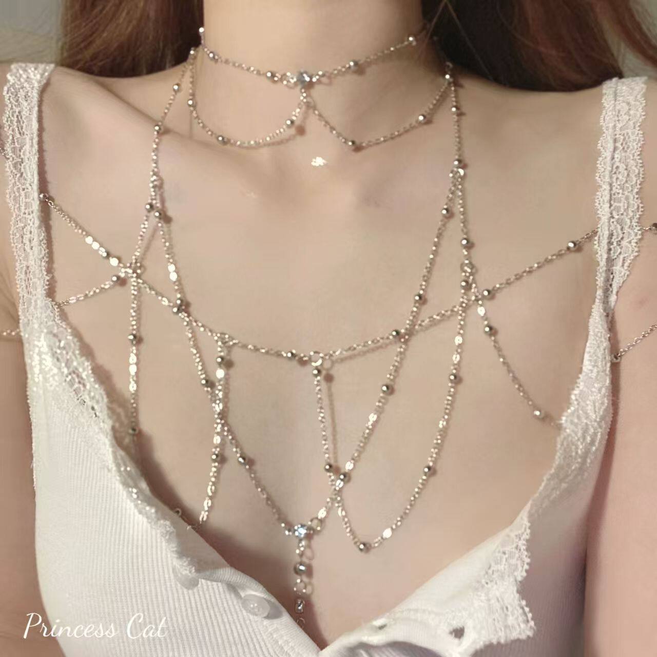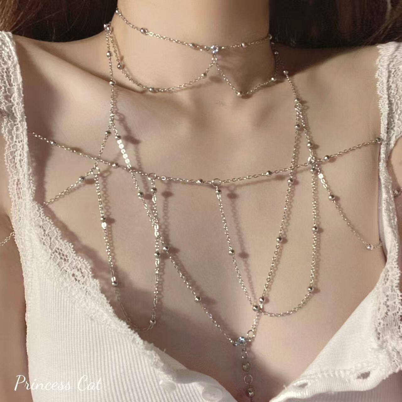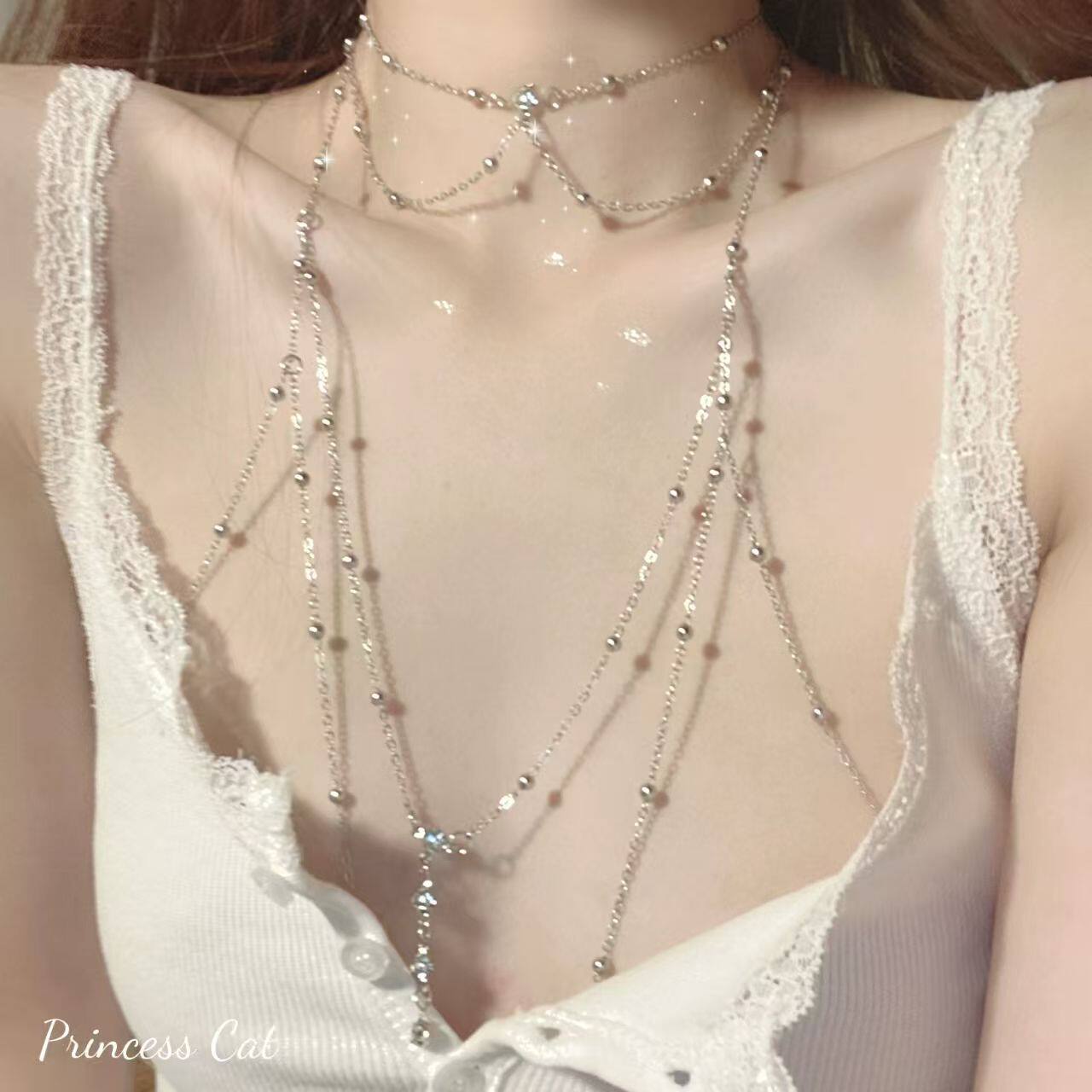 Princess Cat 美丽废物 小众设计银色链百搭小众多way身体链项链