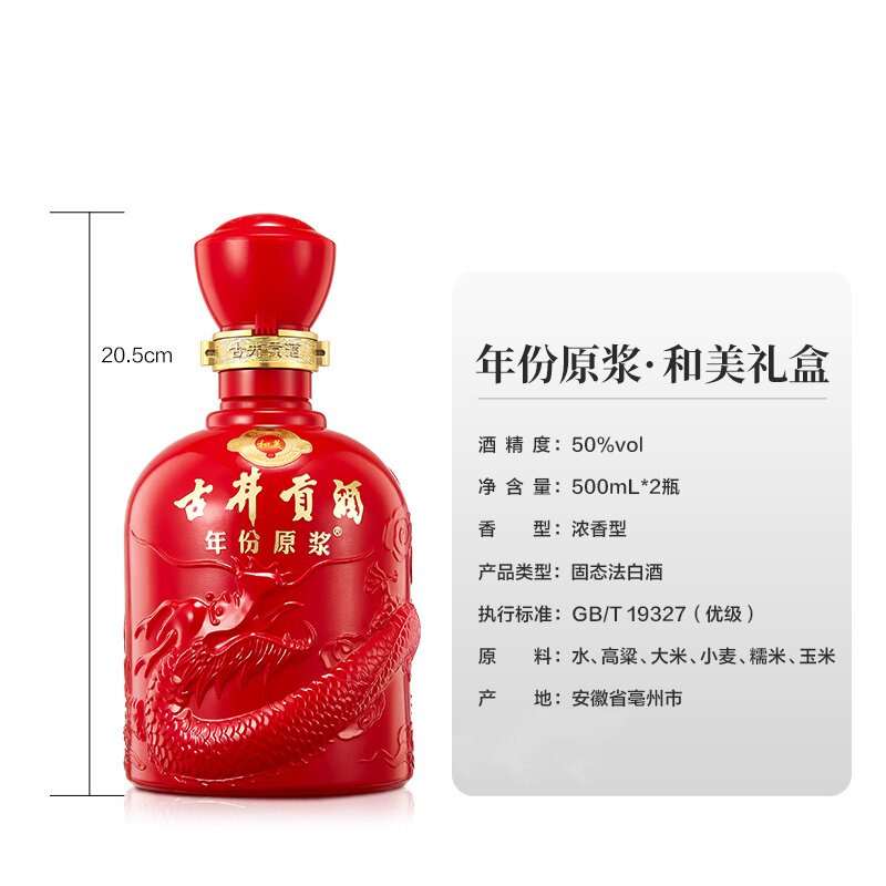 【新品】古井贡酒年份原浆和美双瓶大礼盒50度500ml*2浓香型白酒