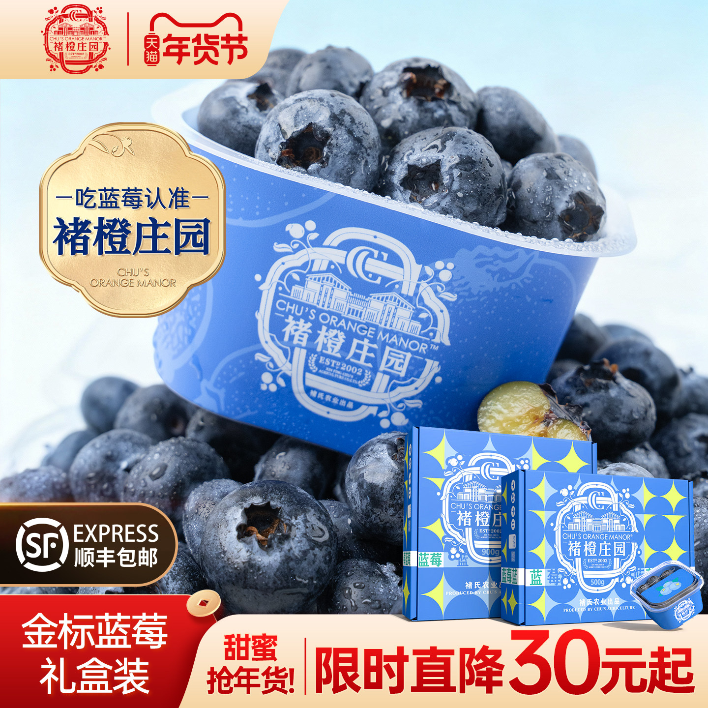 褚橙官方旗舰店 金标蓝莓鲜果花香大果脆甜新鲜高山水果当季现摘