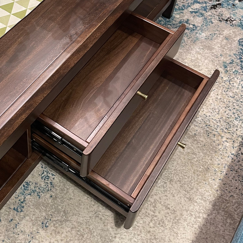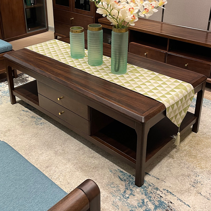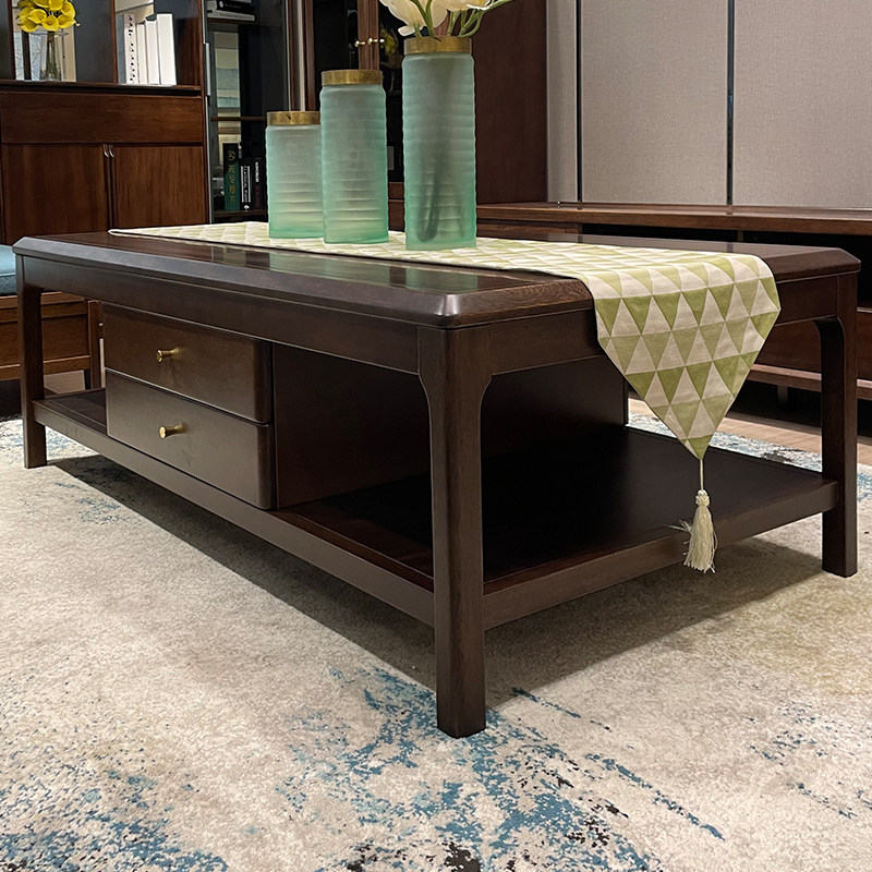 全实木茶几现代简约客厅胡桃木长方形带抽茶桌小户型家用茶台