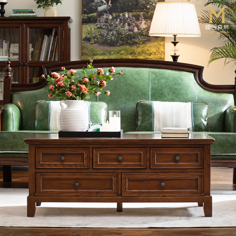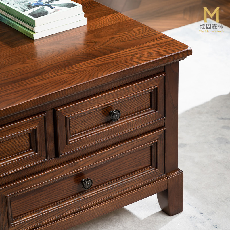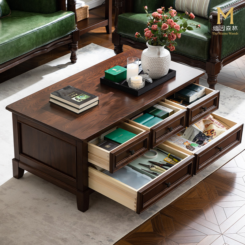 缅因森林大尺寸实木茶几美式全家具客厅简美风格户型带抽屉家用