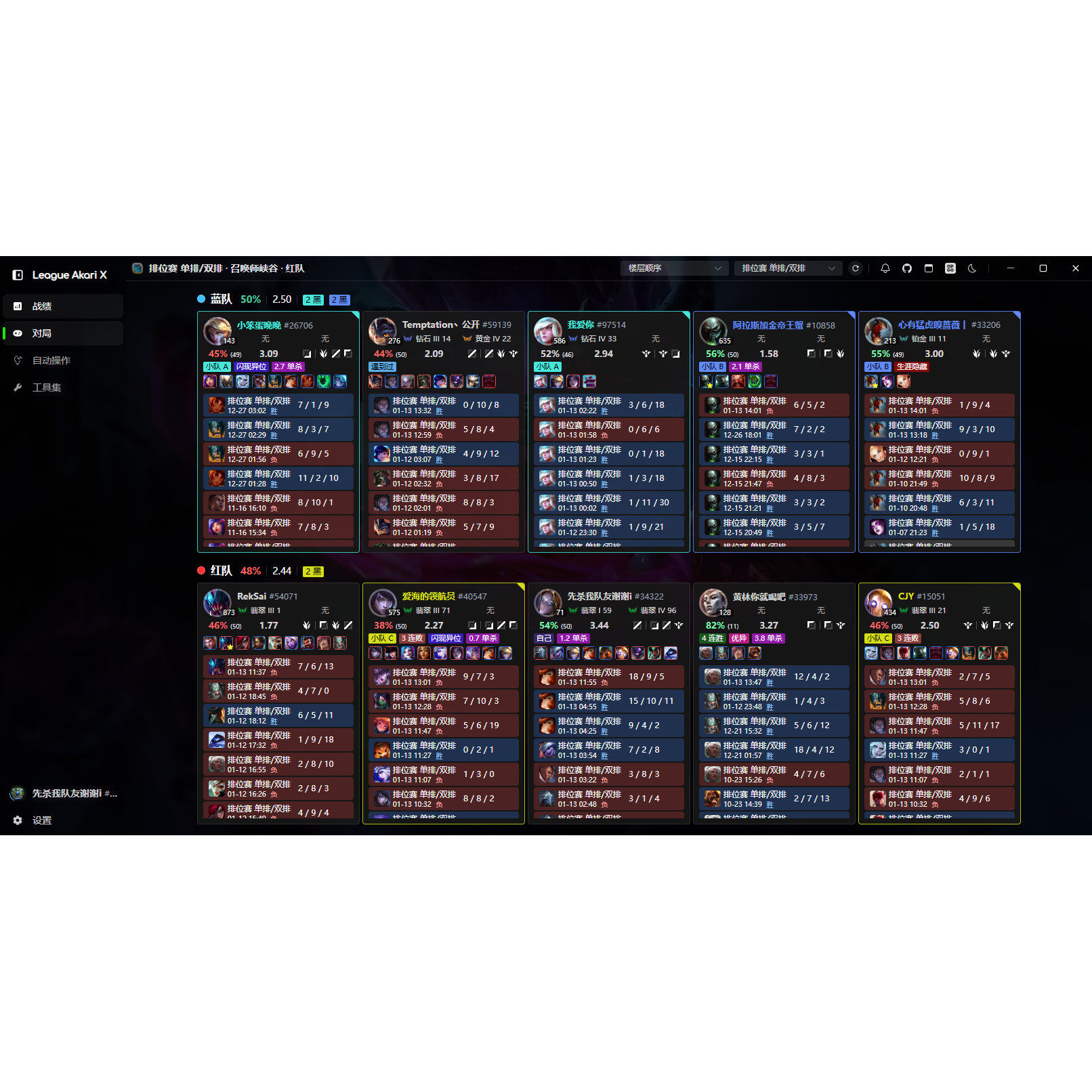 英雄联盟LOL战绩战助手看战绩对局锁战绩助手对局信息自动接受