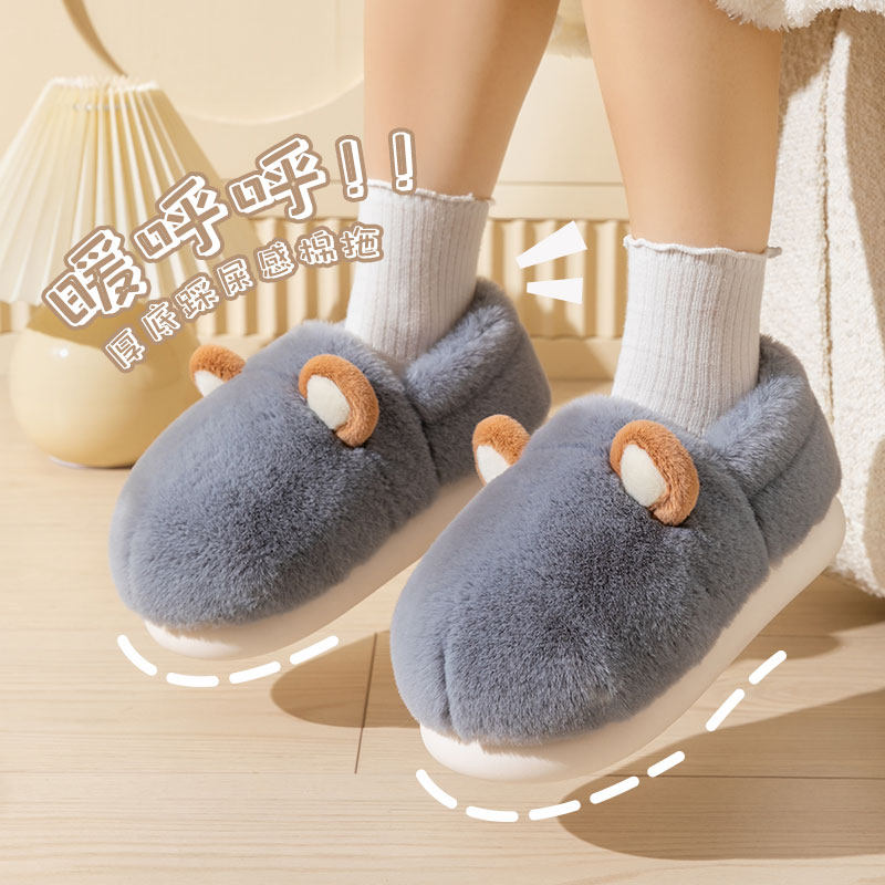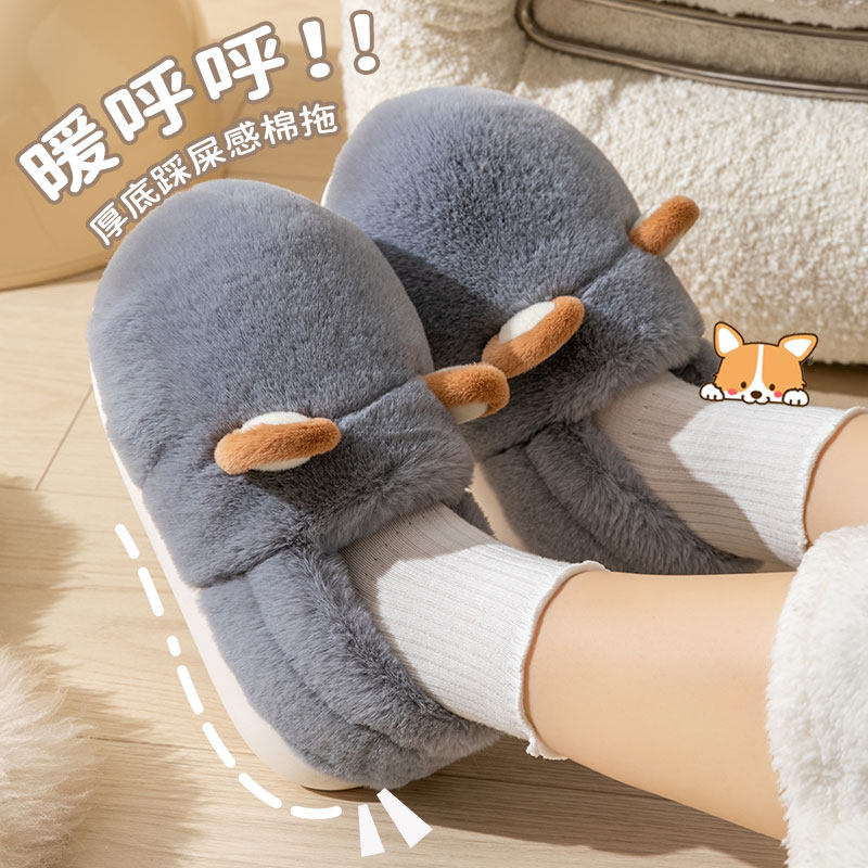 生气小狗棉拖鞋女包跟冬季情侣居家厚底防滑外穿保暖可爱毛绒棉鞋