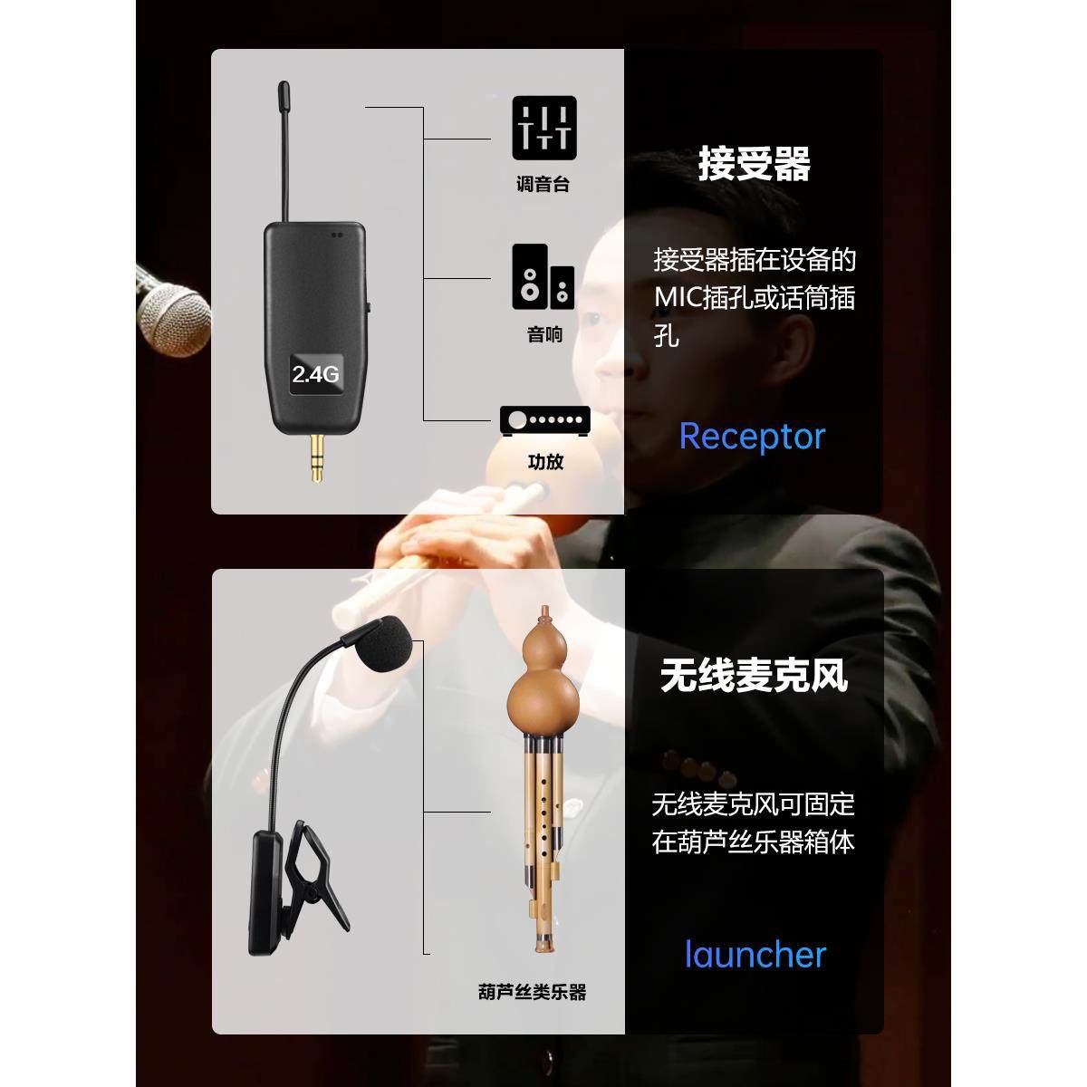 2.4G乐器无线麦克风专业葫芦丝拾音器一拖二舞台演出专用音响二胡