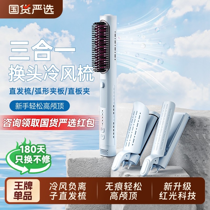 敏煌卷发棒冷风直发梳弧形夹板卷直两用定型高颅顶多合一负离子