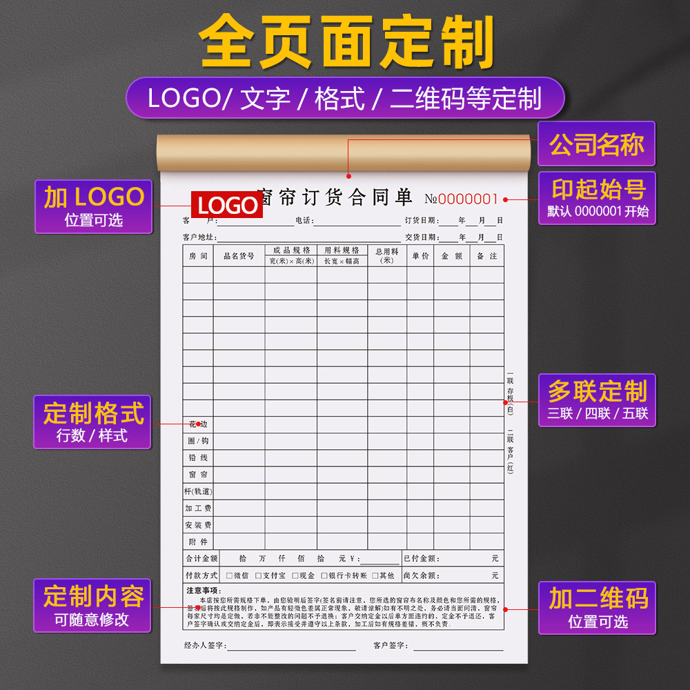 【窗帘店专用】窗帘订货单二联定制布艺开单本三联软装码单销售销货清单合同协议测量预算报价明细单据订单本