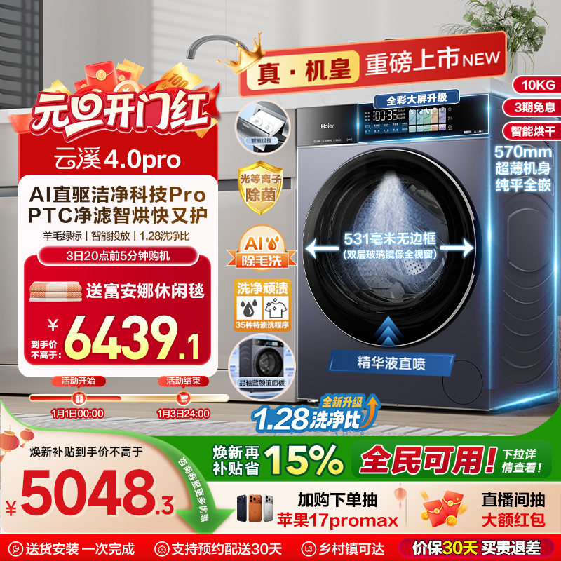[云溪4.0 pro]海尔滚筒洗衣机家用全自动洗烘一体75