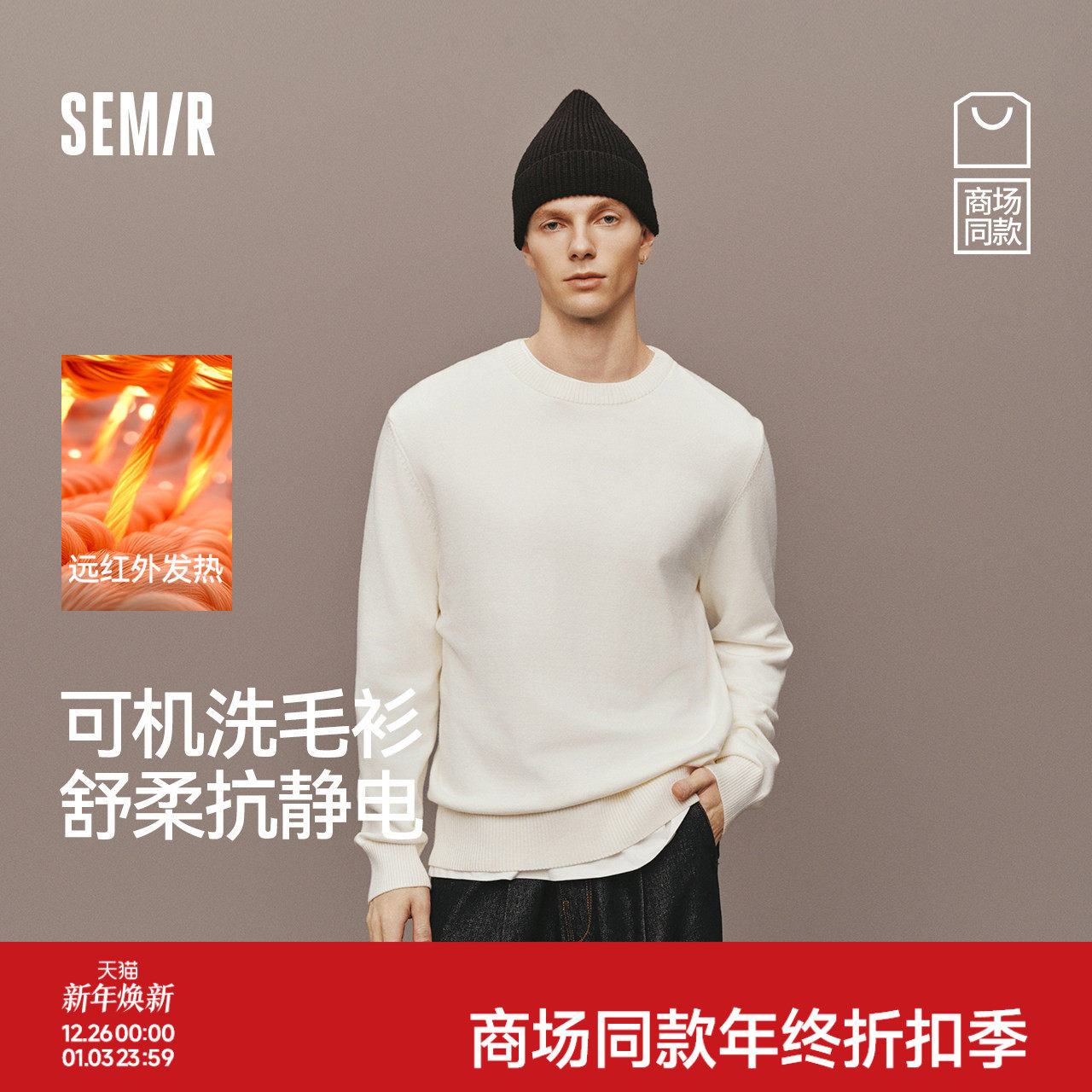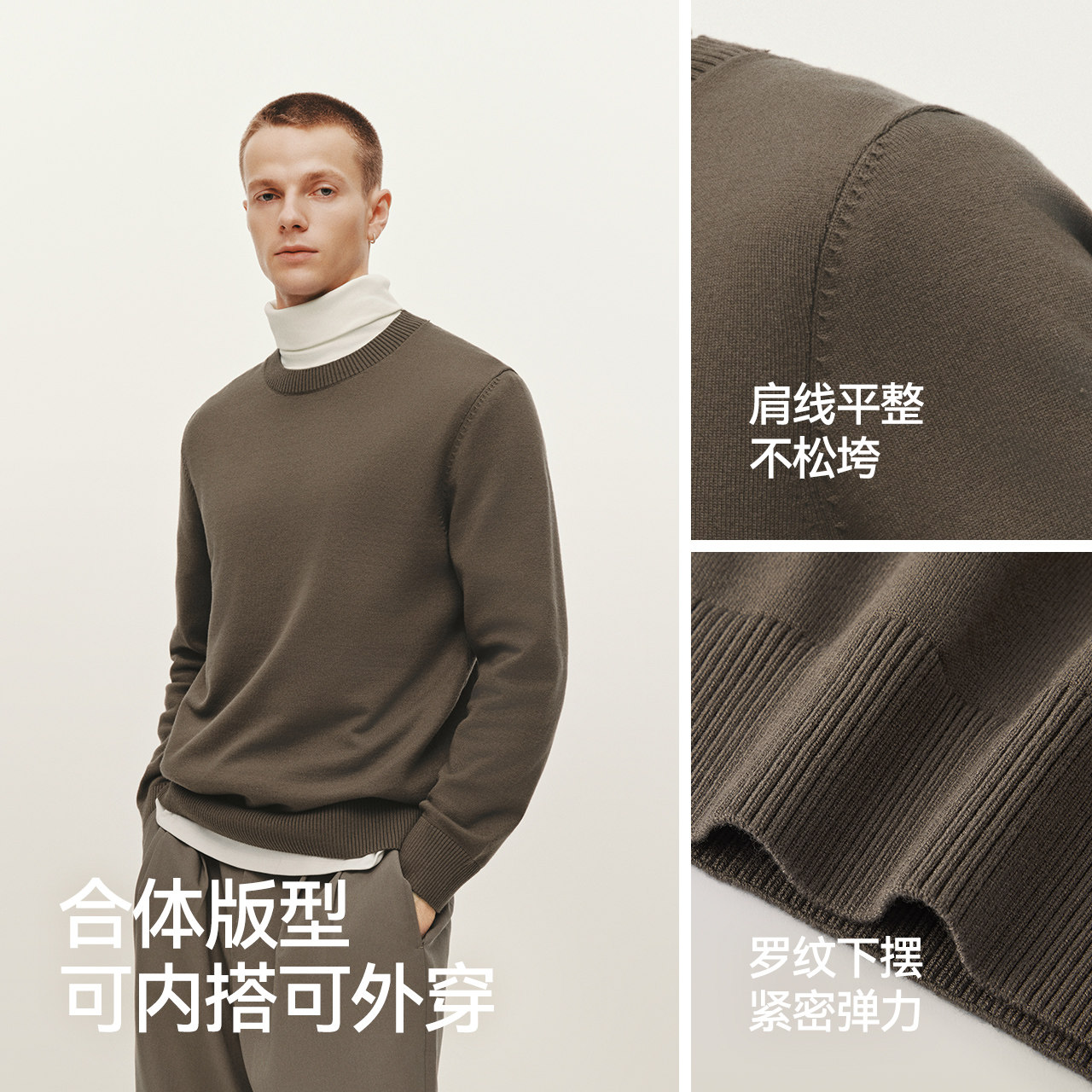森柔|商场同款森马毛衫男冬发热抗静电打底衫2025新款内搭针织衫
