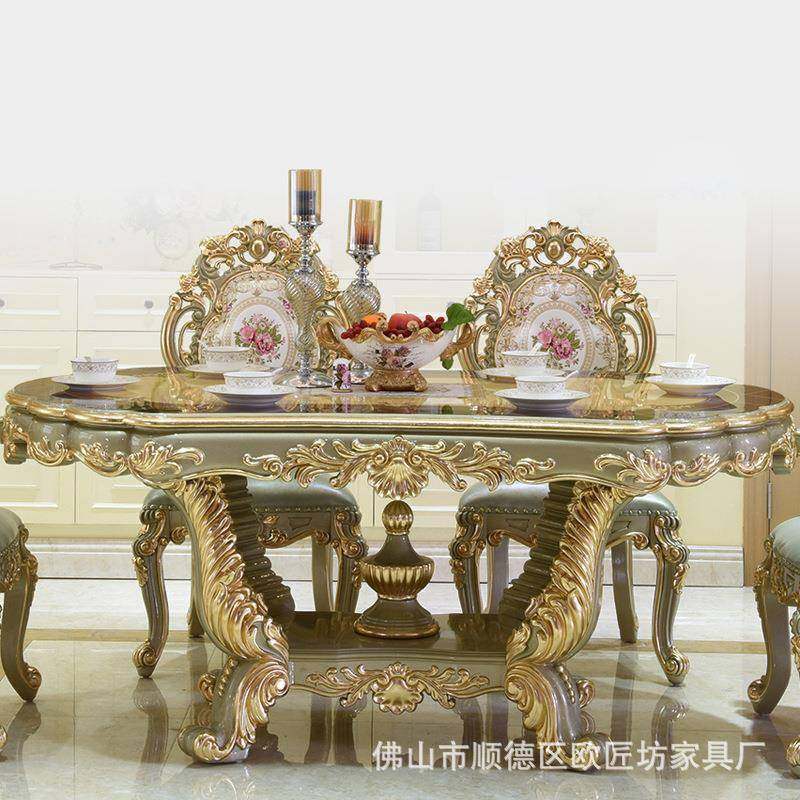欧式餐桌实木饭桌家用大小户型长方形轻奢一桌六椅餐厅组合餐桌椅