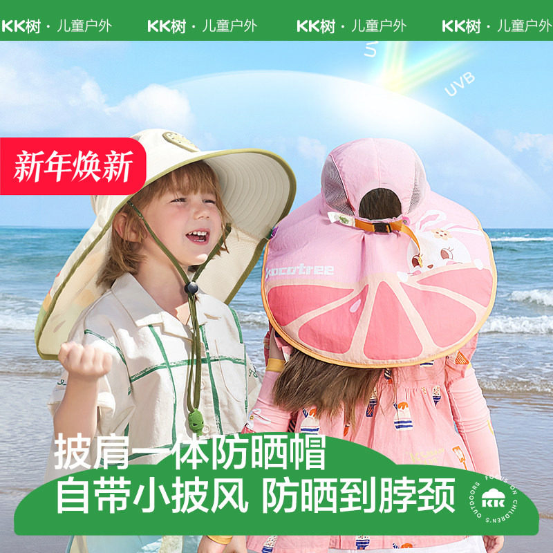 KK树儿童防晒帽夏季大帽檐宝宝遮阳男女童太阳帽防紫外线沙滩海边
