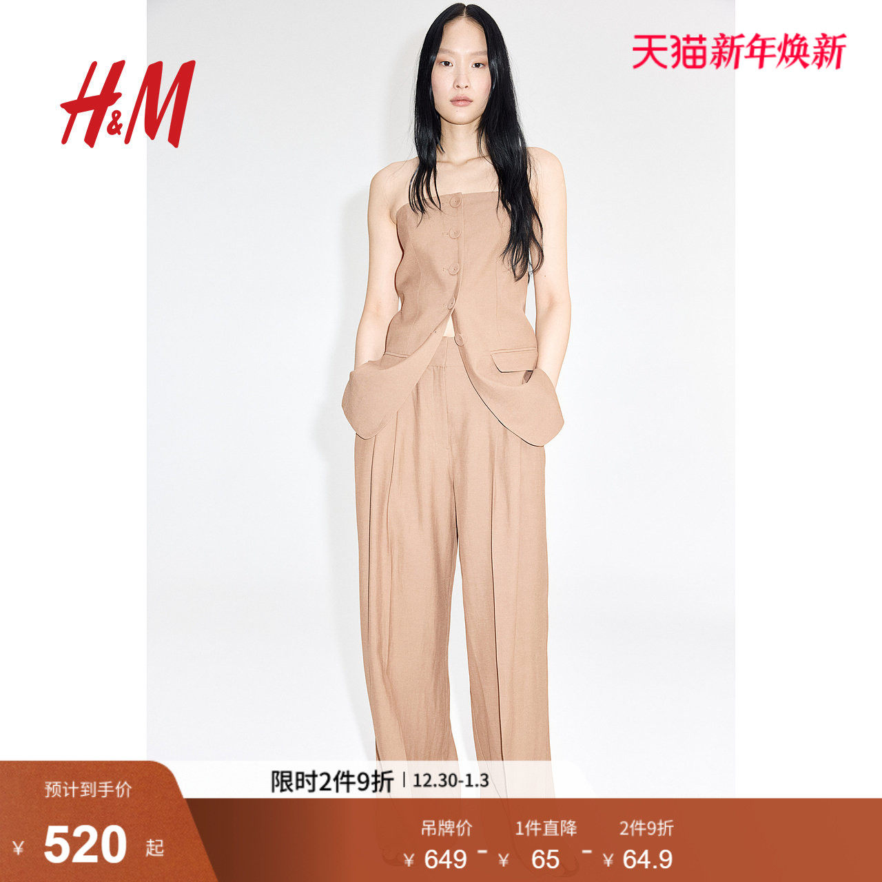 HM女装2025年冬季新款亚麻混纺阔腿裤1274230