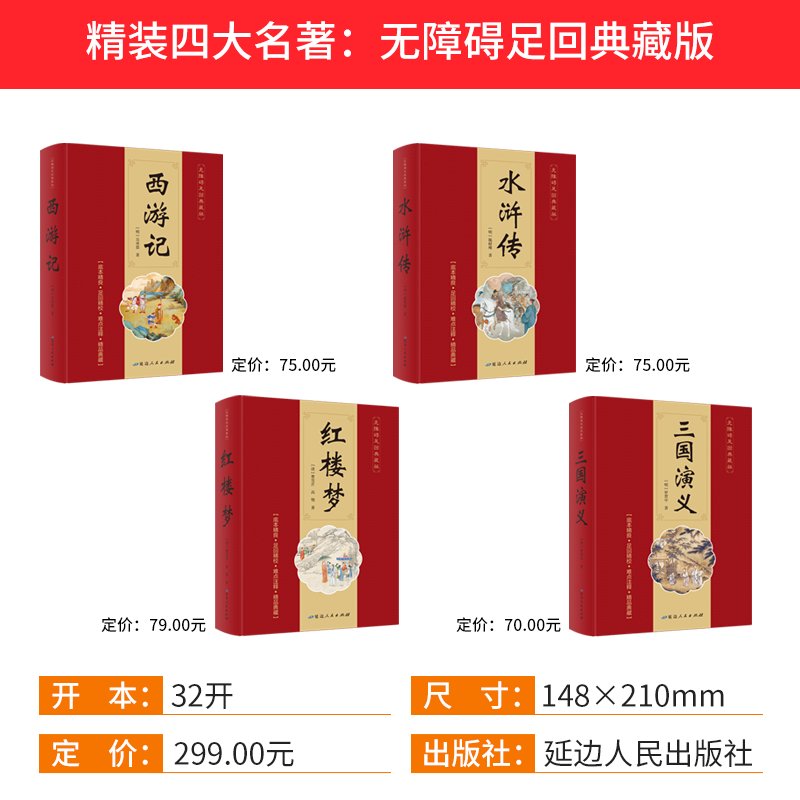 红楼梦原著正版四大名著全套4册精装版完整版无障碍阅读典藏版西游记三国演义水浒传学生课外名著书籍套装经典文学无删减燕山小说