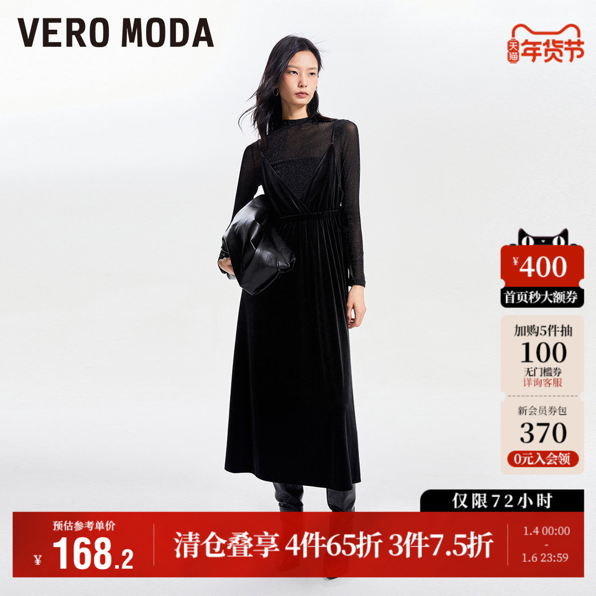 Vero Moda奥莱T恤连衣裙子套装秋冬清仓圆领打底吊带丝绒裙女流行