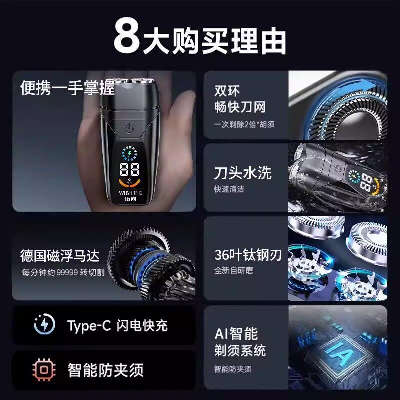 【免费试用】剃须刀男士电动迷你便携刮胡刀官方正品2025年新款