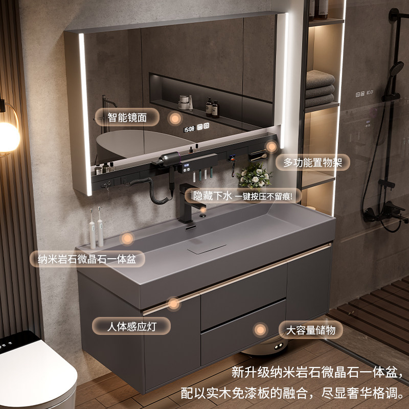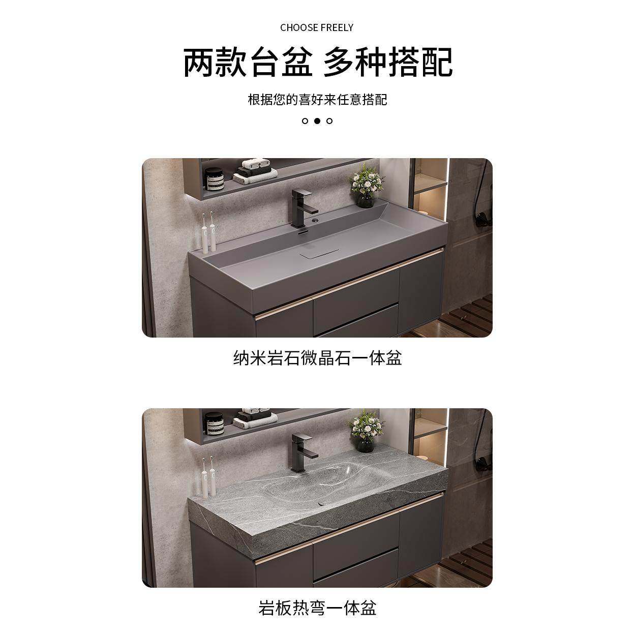 新品浴室柜组合纳米微晶石一体台盆洗手盆洗脸盆化妆室洗漱台套装