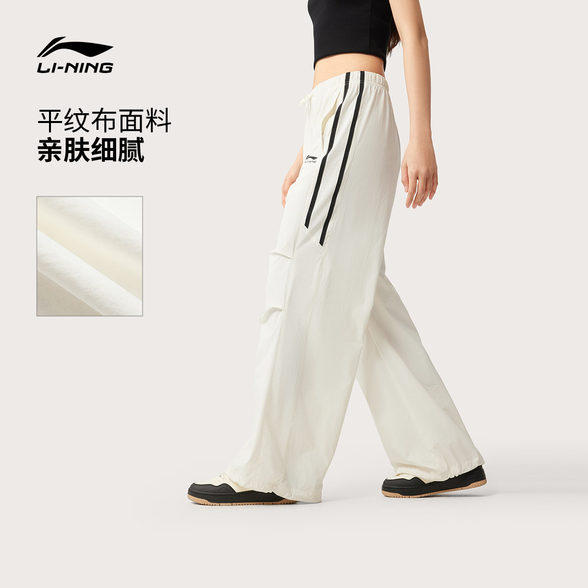 李宁阔腿裤女士新款宽松休闲伞兵裤直筒显瘦裤子美式运动加绒裤女