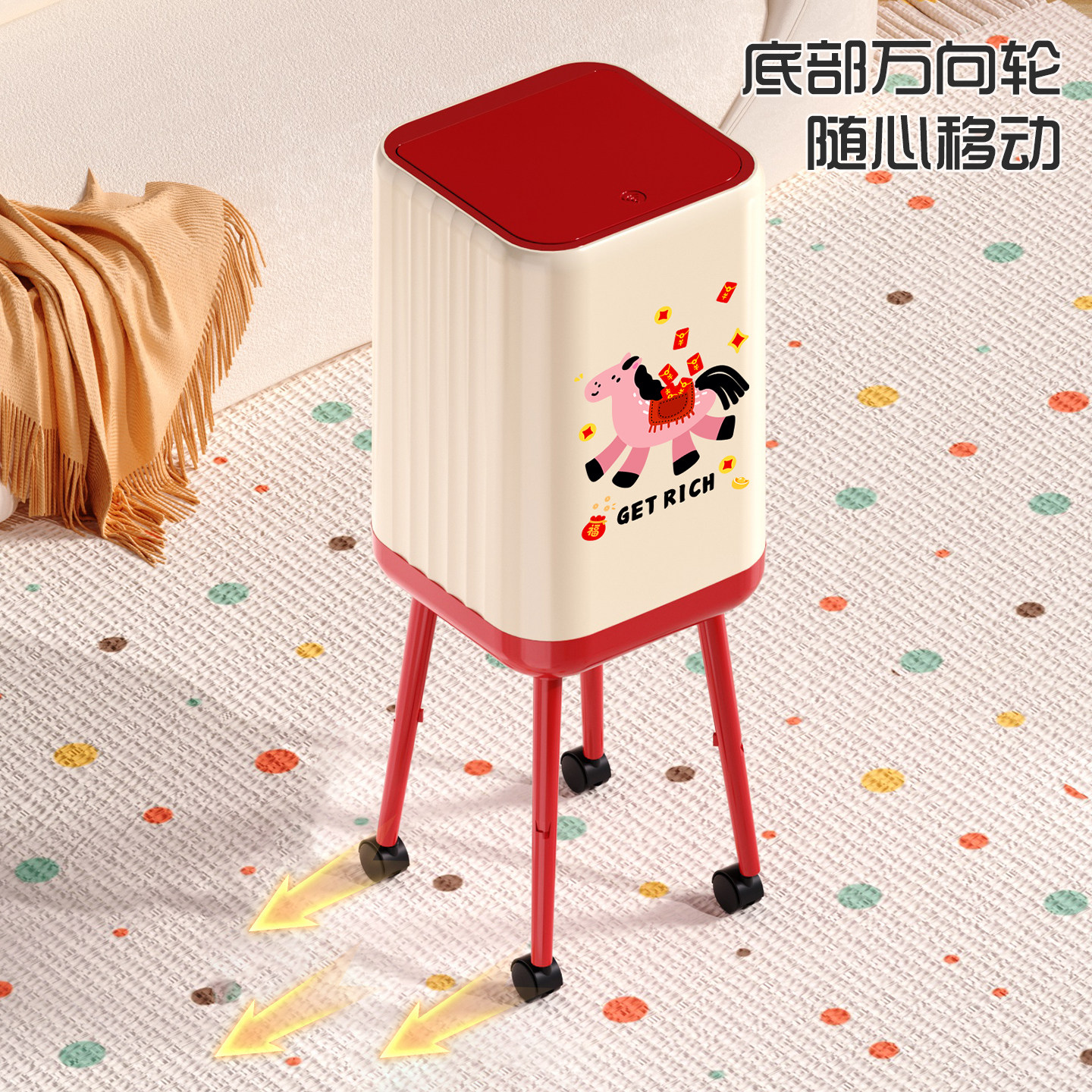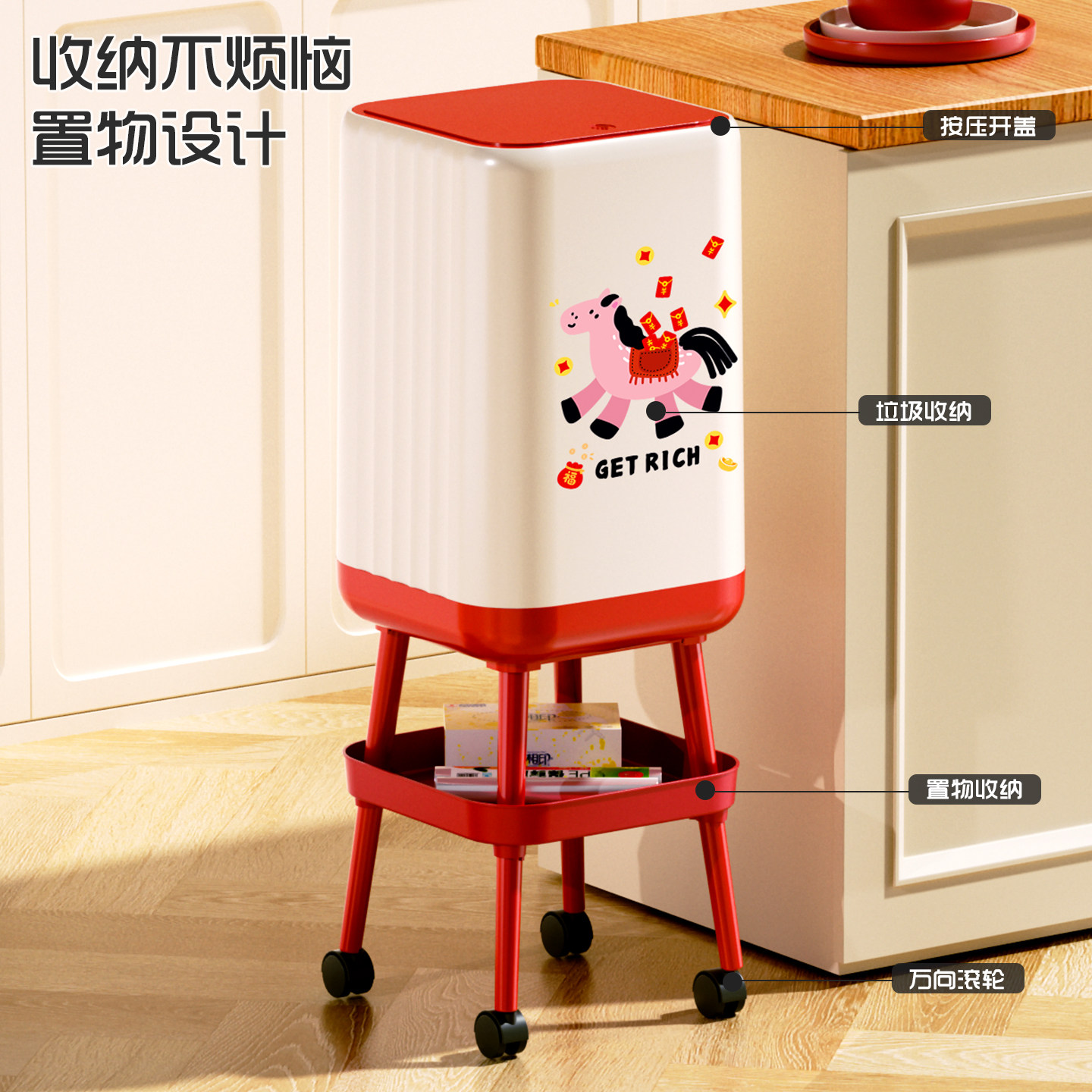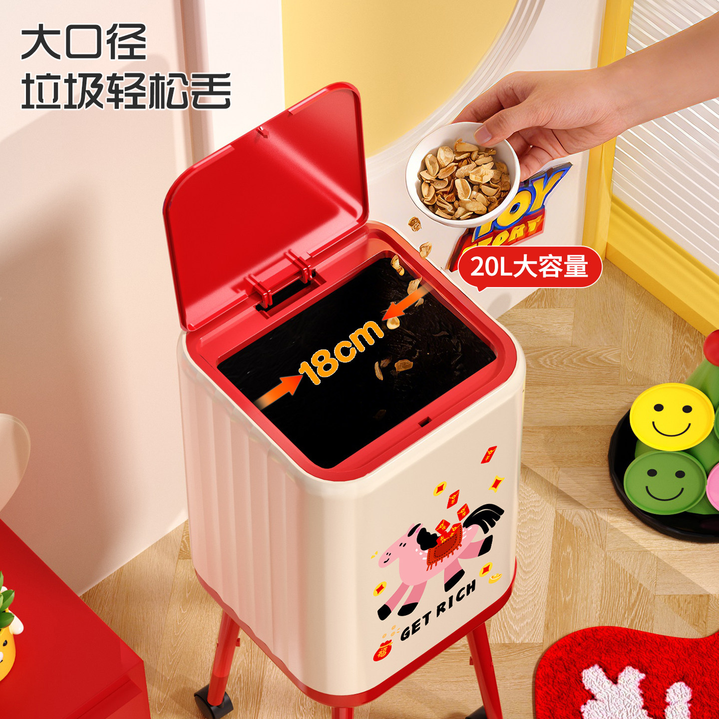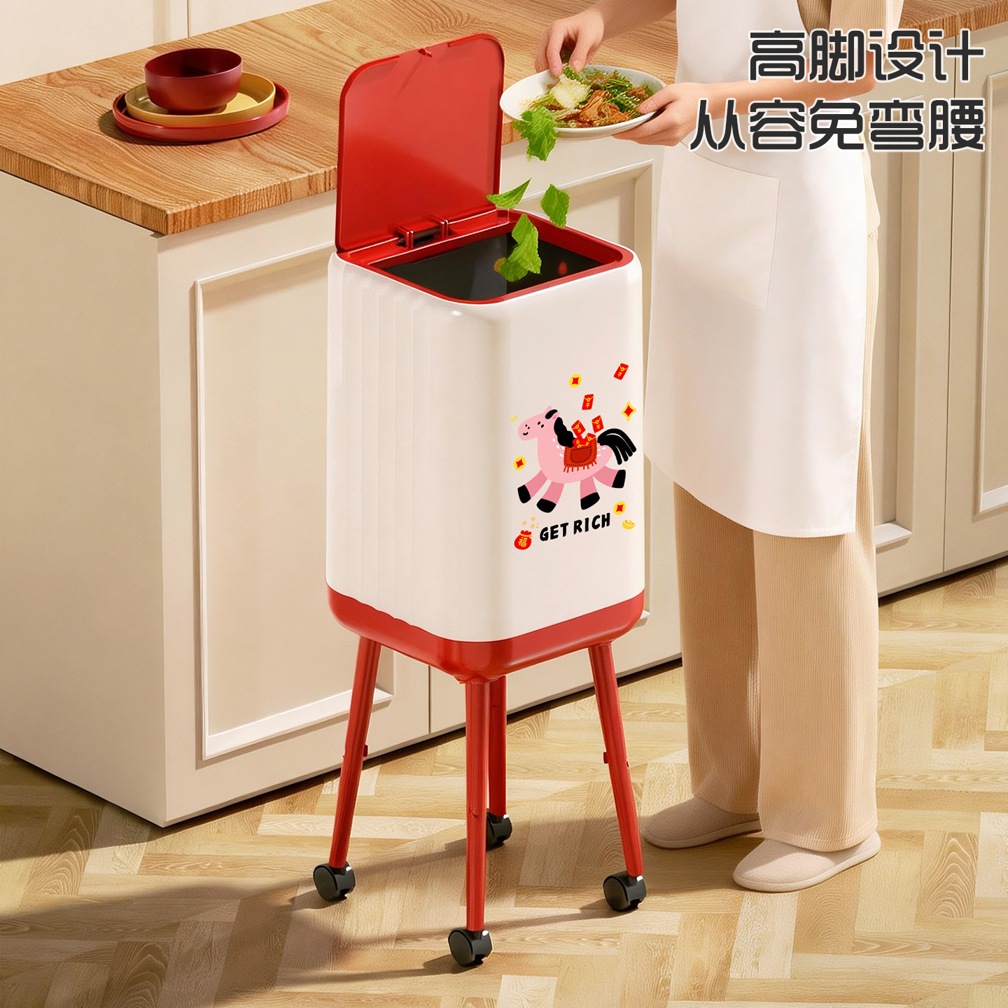垃圾桶家用2026新款免弯腰高颜值高脚厨房客厅大容量可移动卫生桶