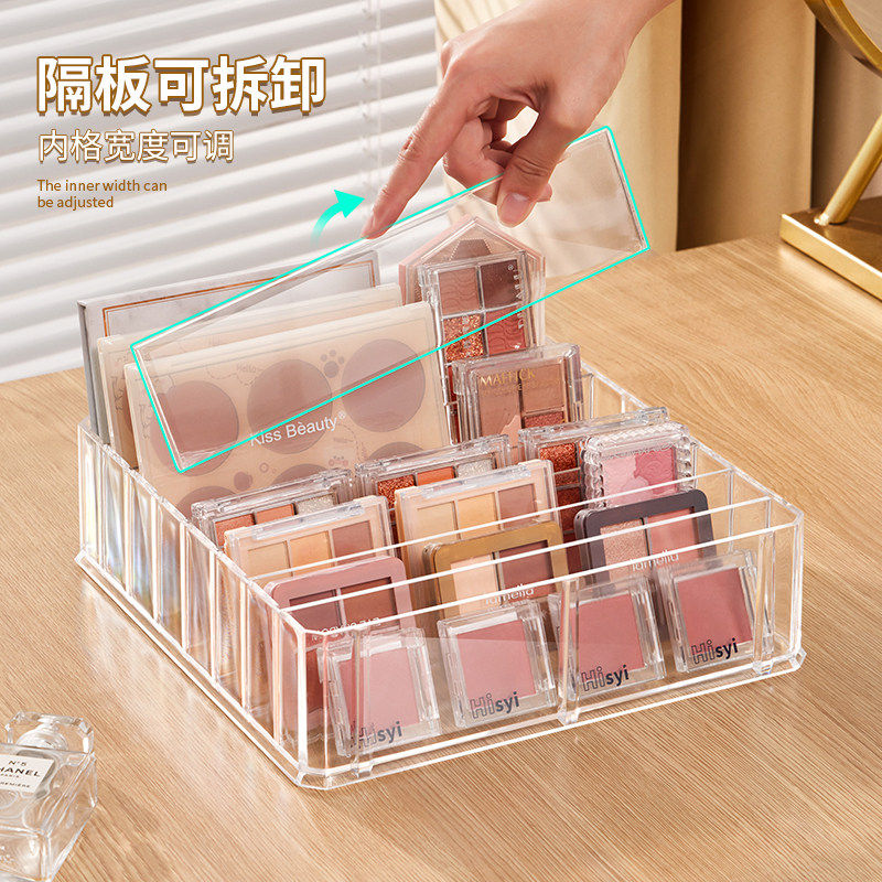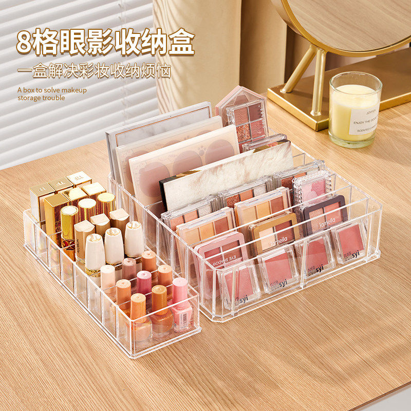 眼影收纳盒彩妆唇釉口红透明分格亚克力梳妆台桌面化妆品置物架子
