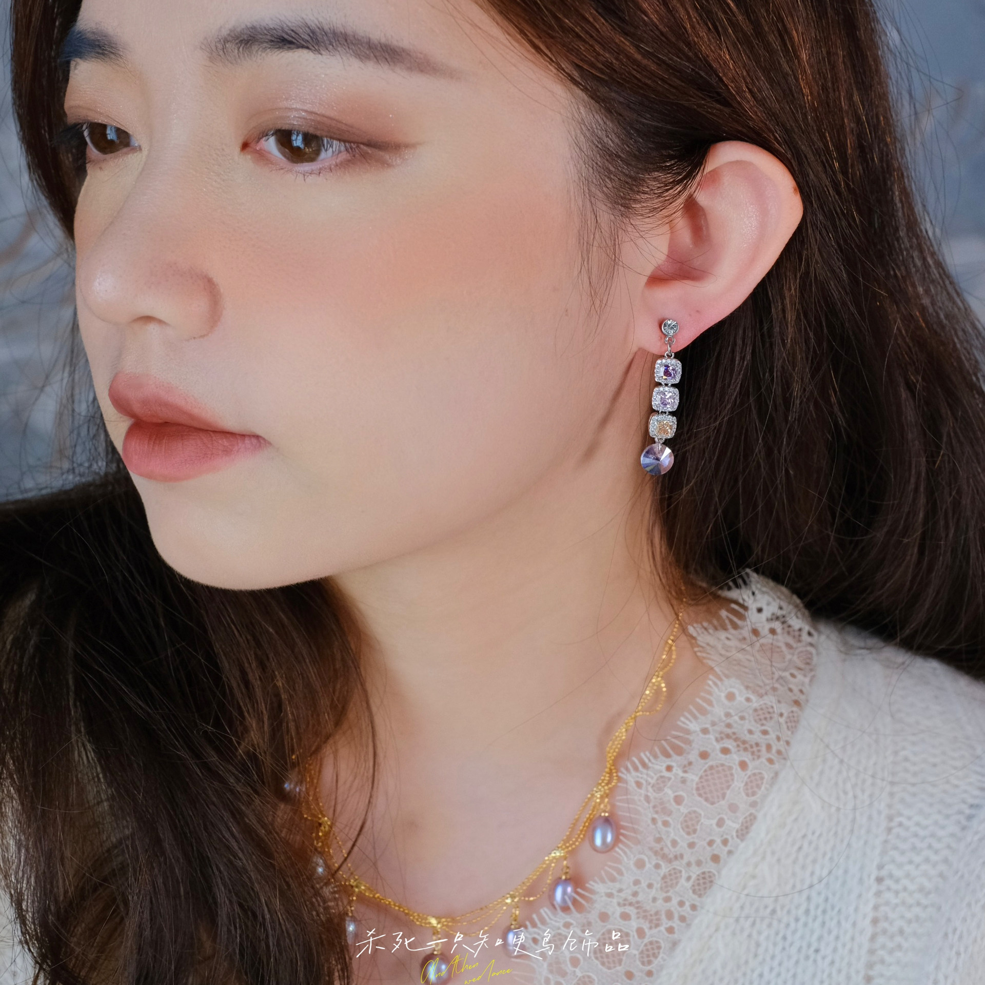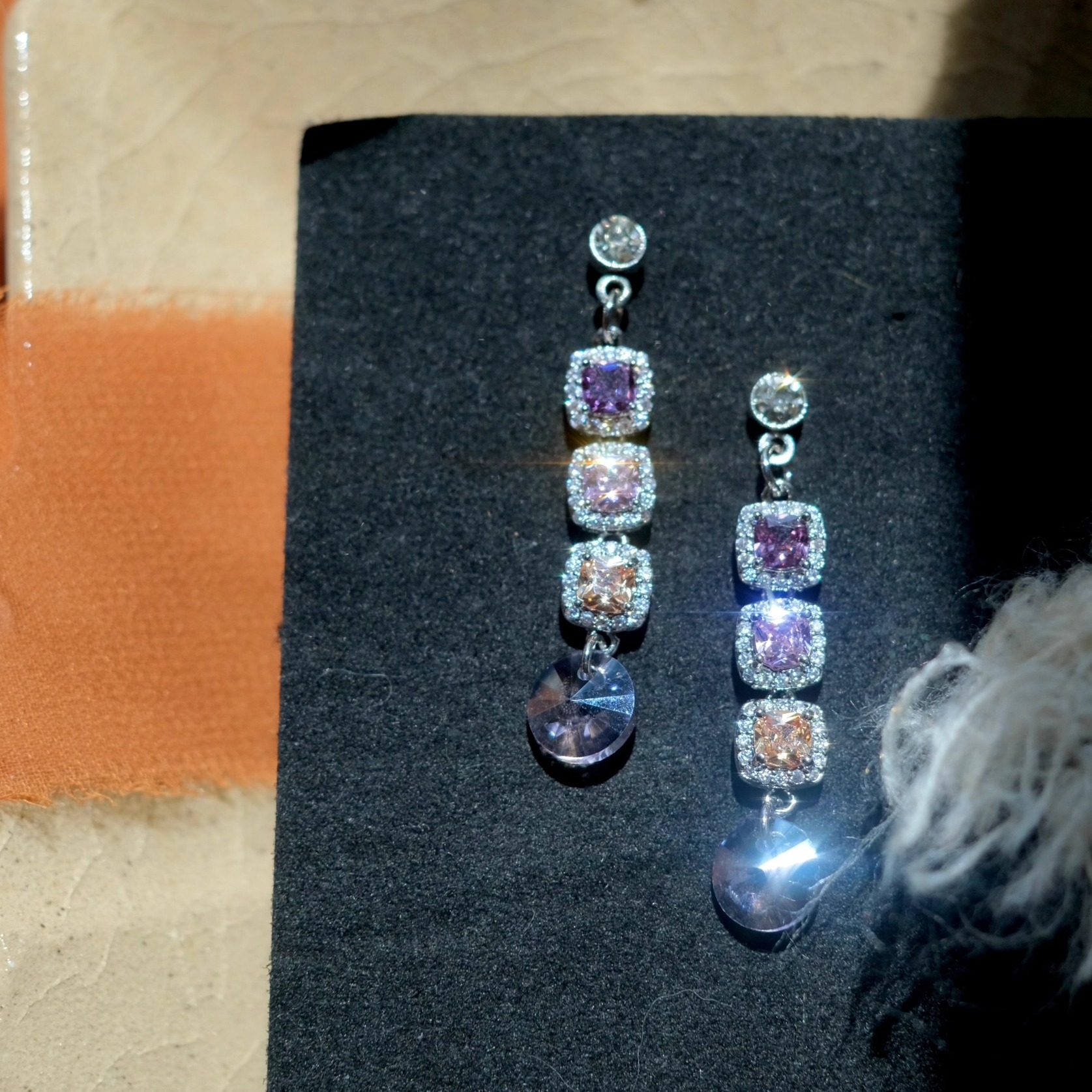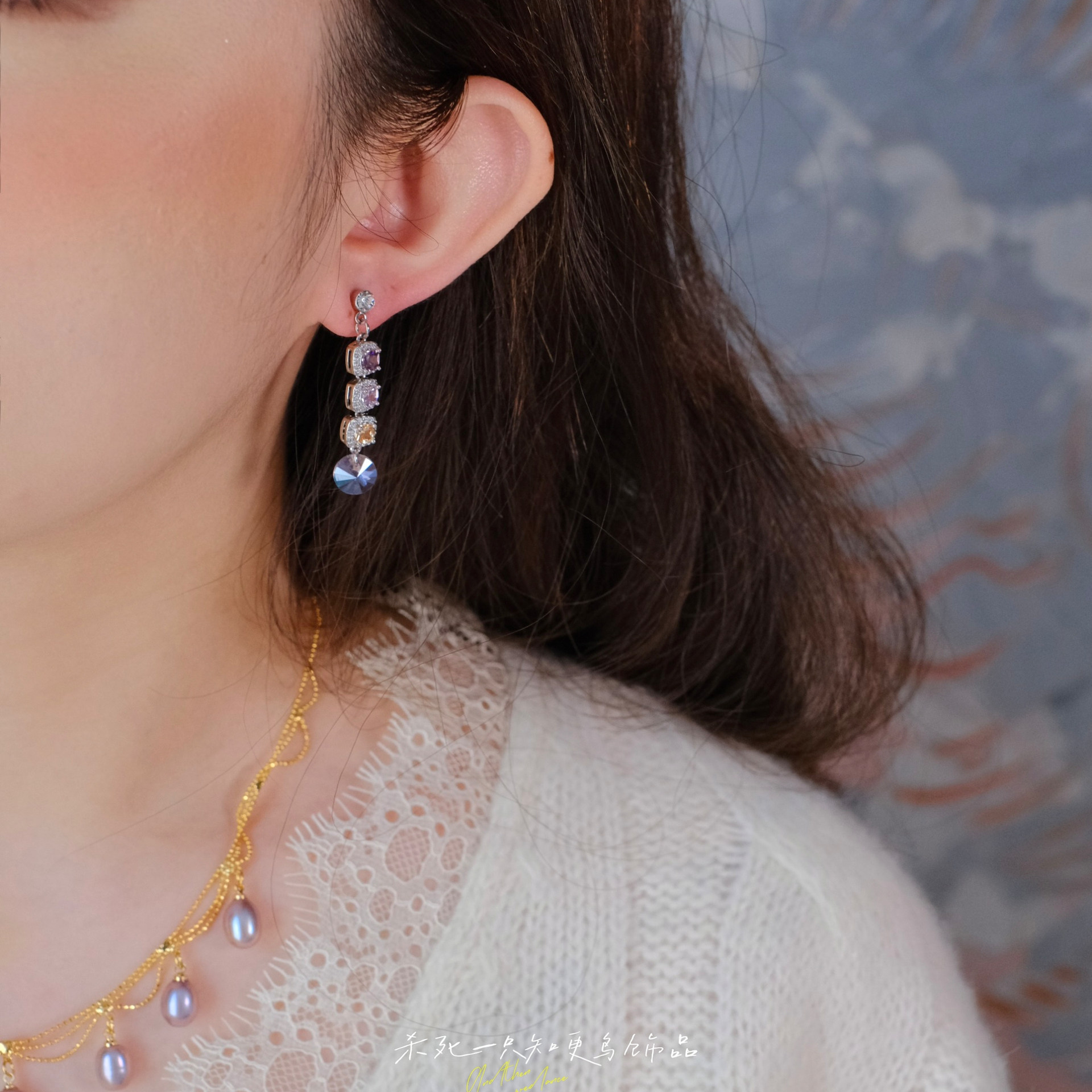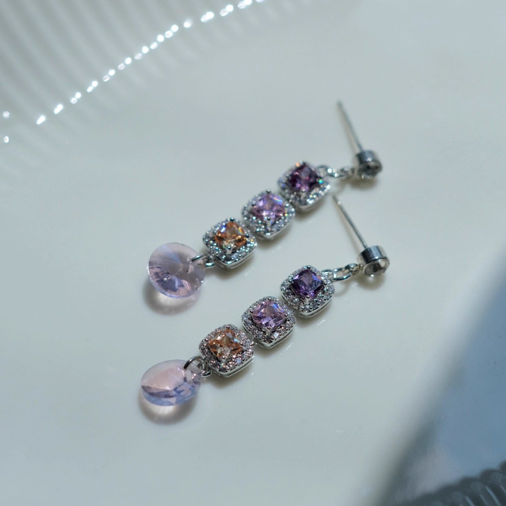 《溢彩流光》复古优雅轻奢精致超闪紫色方糖锆石长款耳钉耳环耳夹